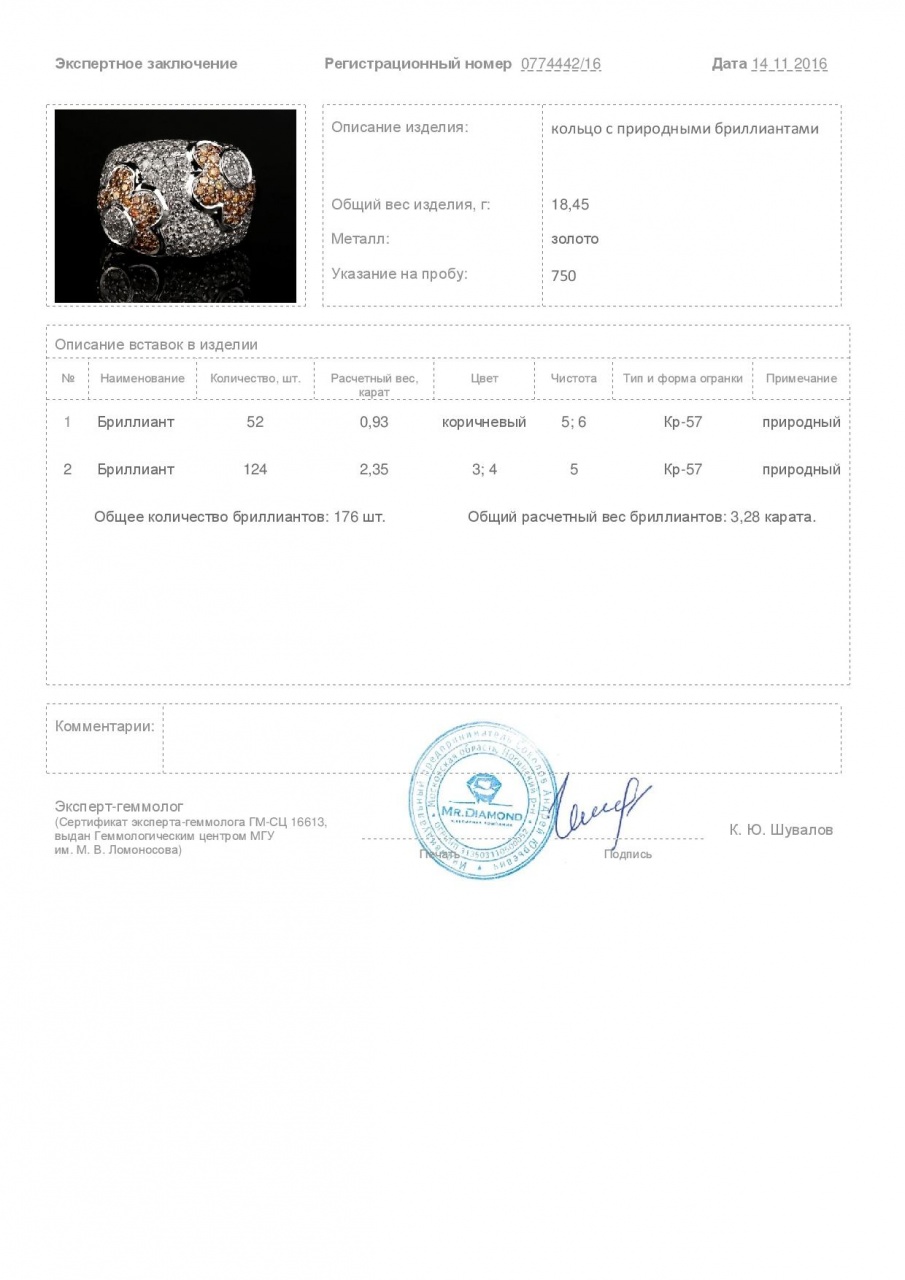 Потрясающее золотое кольцо с бриллиантами 3.28ct