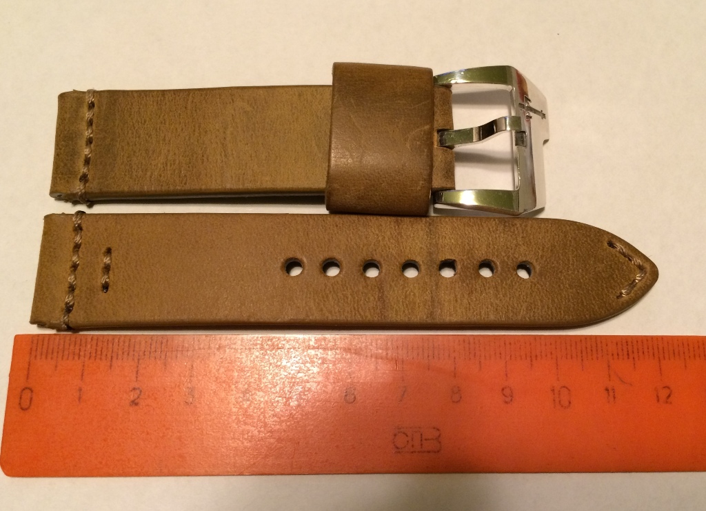 Топовый ремешок из кожи высшего качества, ручной работы, от известного продавца из Гонконга "Zhuoleistore" и серебряной пряжкой от "Kydelka". Мало б/у - от силы 2 недели - и то не каждый день. Параметры: цвет - желтый, ширина - 22/22 мм., толщина - 4 мм., длина - 12,3/8,3-без пряжки. В комплекте две шпильки 22 мм и шпилькосъёмник. С сожалением, но приходится расставаться - коротковат на моё запястье (18 см) - все время приходится возвращать хлястик. Реальный цвет (его очень хорошо передают фото с часами при дневном свете) - просто отпад. Обмен не интересен, пересыл по России почтой за мой счет заказным письмом по предоплате на карту Сбербанка. Цена: 4'100 руб.