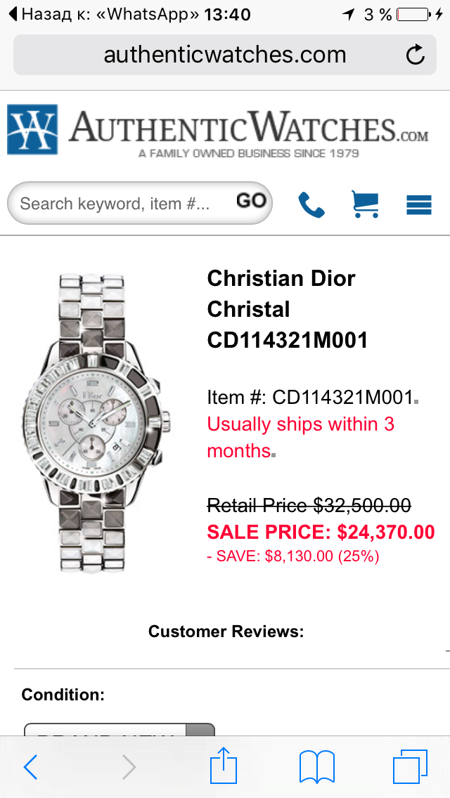 ПОДАРОК ДЛЯ ЛЮБИМОЙ DIOR С БАГЕТНЫМИ БРИЛЛИАНТАМИ