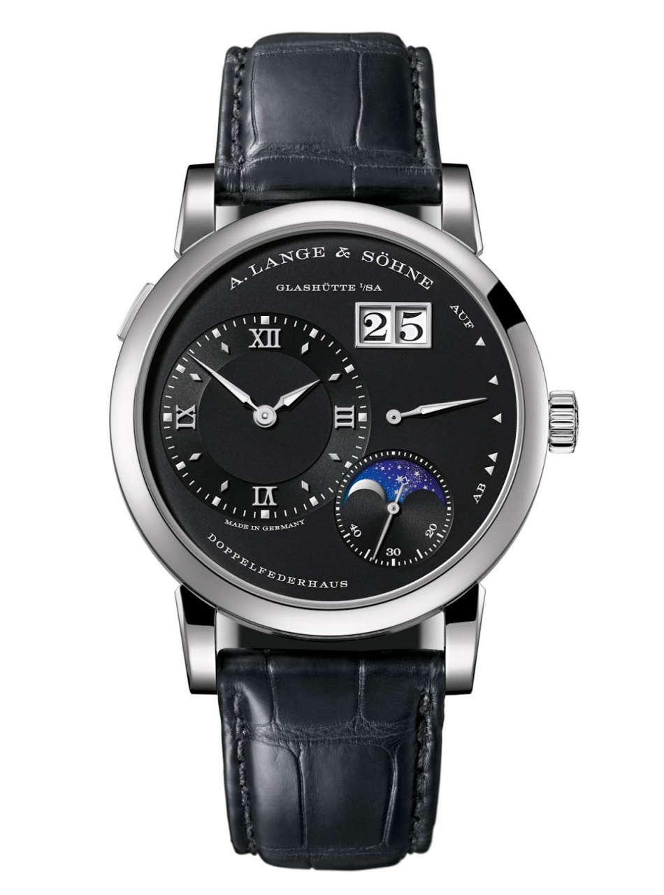 Немецкая часовая компания A. Lange & Söhne проанонсировала свою новую модель Lange 1 Moon Phase, которая будет официально представлена на международной часовой выставке SIHH-2017 (SALON INTERNATIONAL DE LA HAUTE HORLOGERIE, состоится в период с 16 по 20 января 2017 года в Женеве). Новинка представлена в трех вариантах: в 18-каратном белом золоте с черным циферблатом (Ref. 192.029), в 18-каратном розовом золоте с серебристым циферблатом (Ref. 192.032) и в платине с родированным циферблатом (Ref. 192.025).