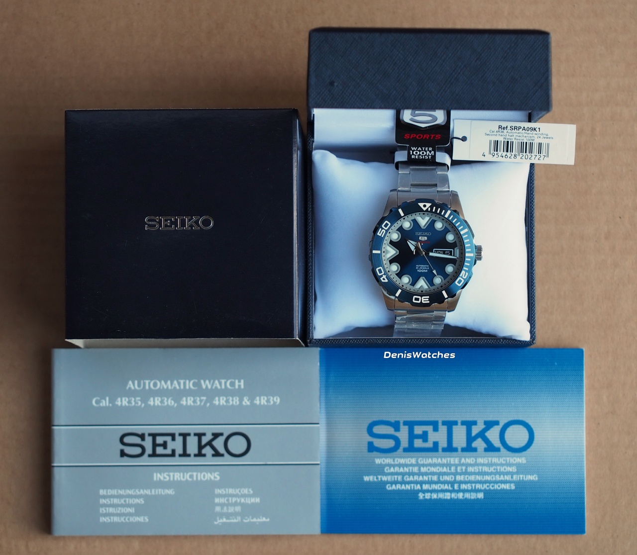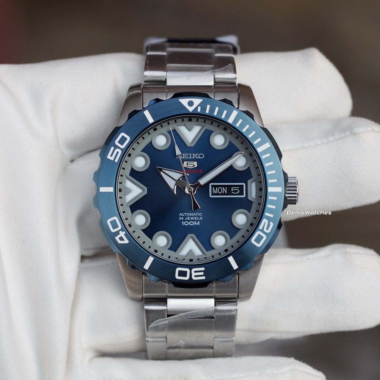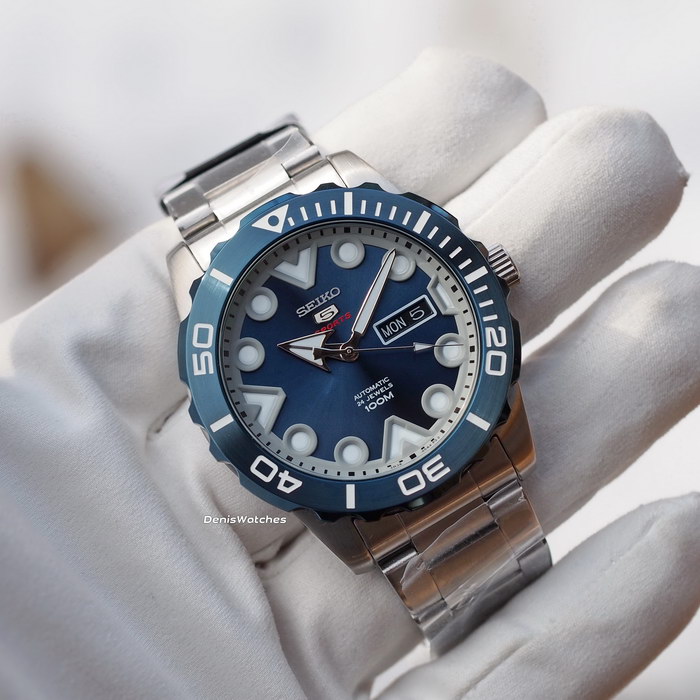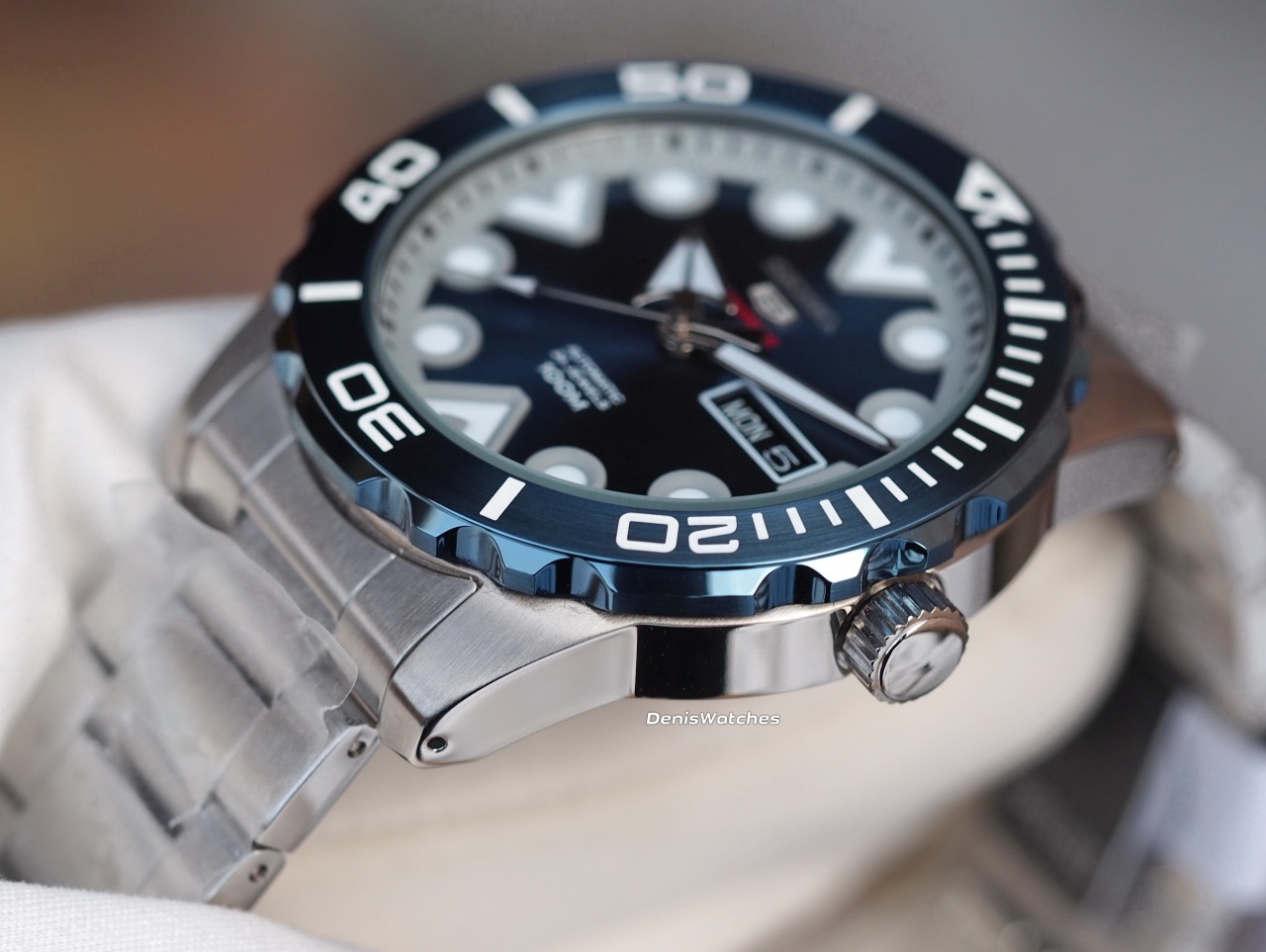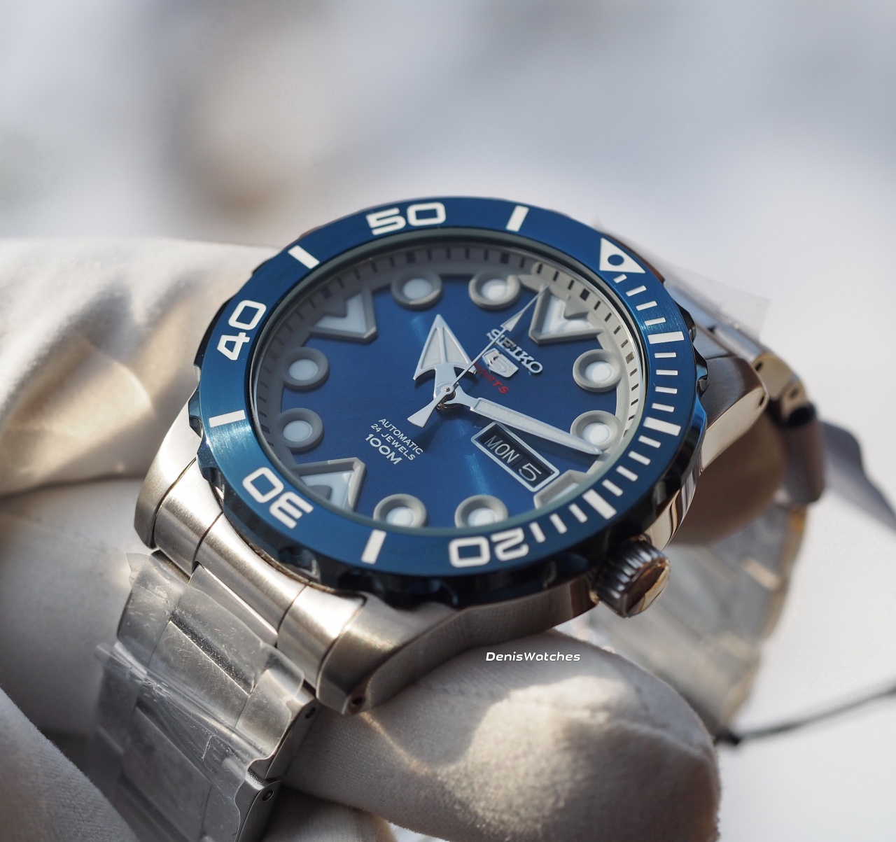 Синий циферблат, красивый глубокий цвет, накладные лого Seiko и 5