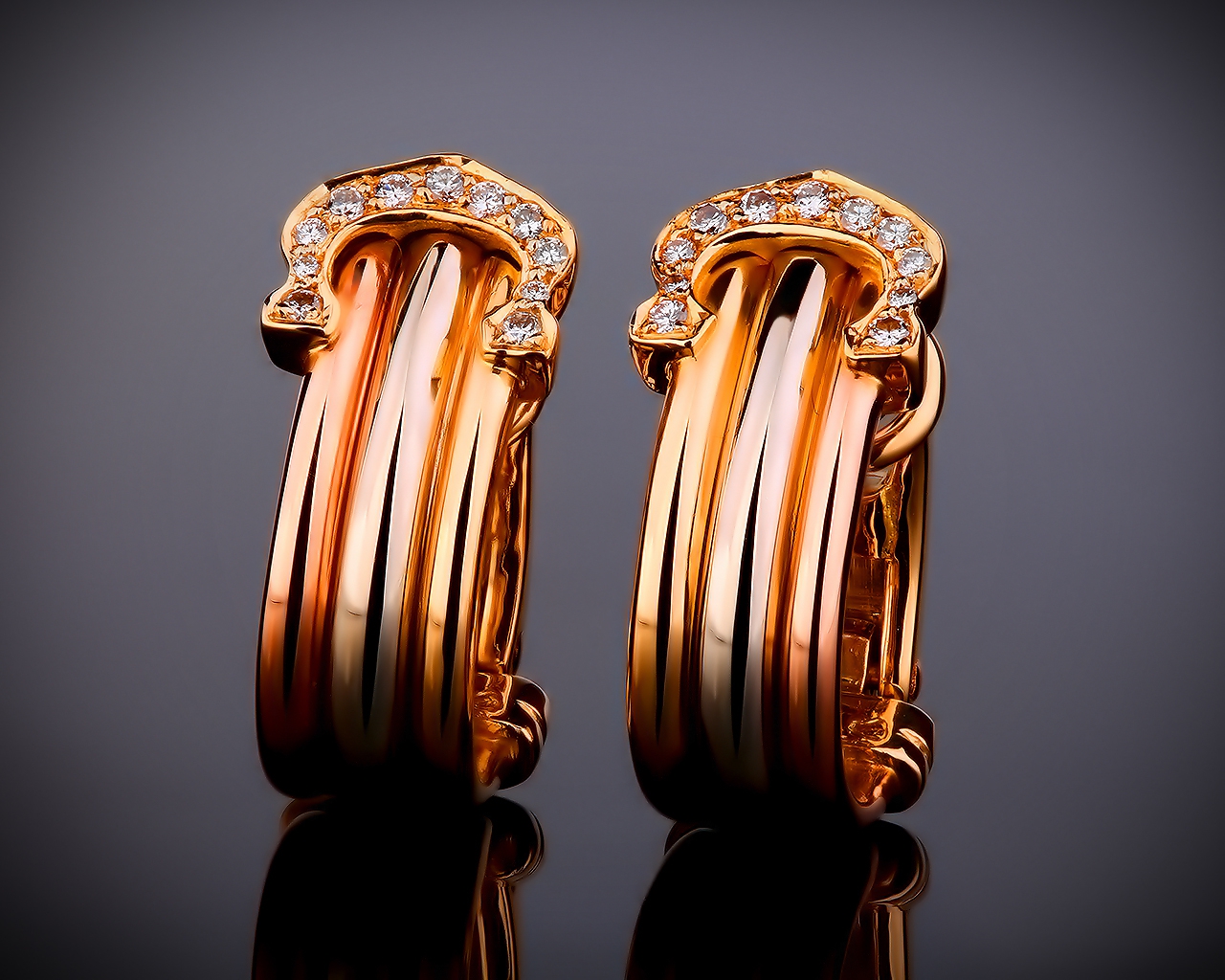 | cartier trinity, бриллиантовые серьги, золотые серьги с бриллиантами |