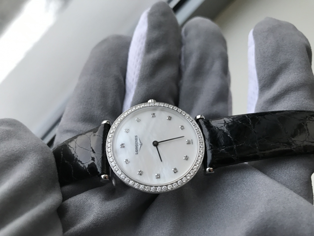 РОСКОШНЫЕ ЖЕНСКИЕ LONGINES La Grande Classique/68 БРИЛЛИАНТОВ/ПЕРЛАМУТРОВЫЙ ЦИФЕР/29 ММ/КВАРЦ/РЕМЕНЬ