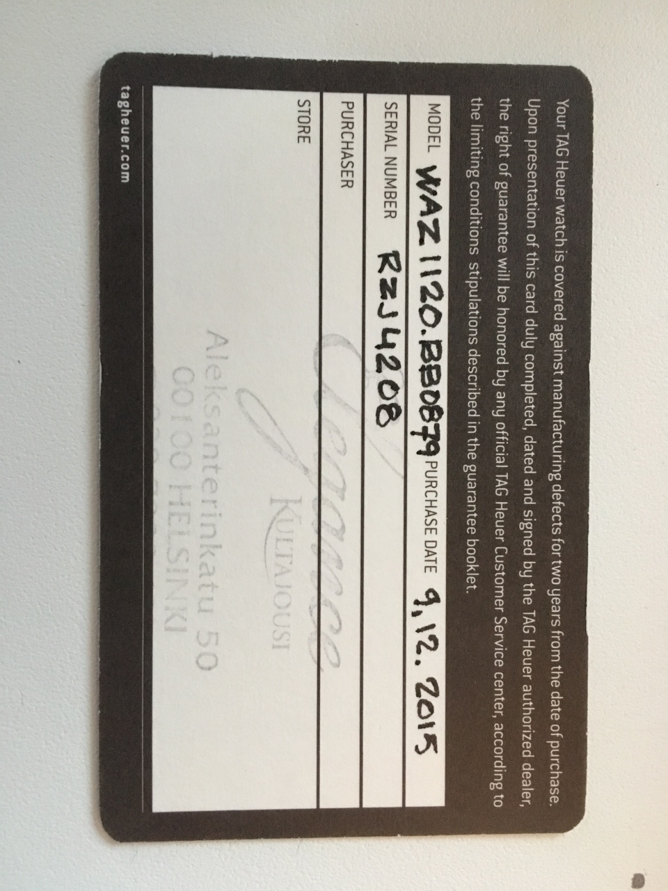 formula 1, tag heuer, гарантийная карта |