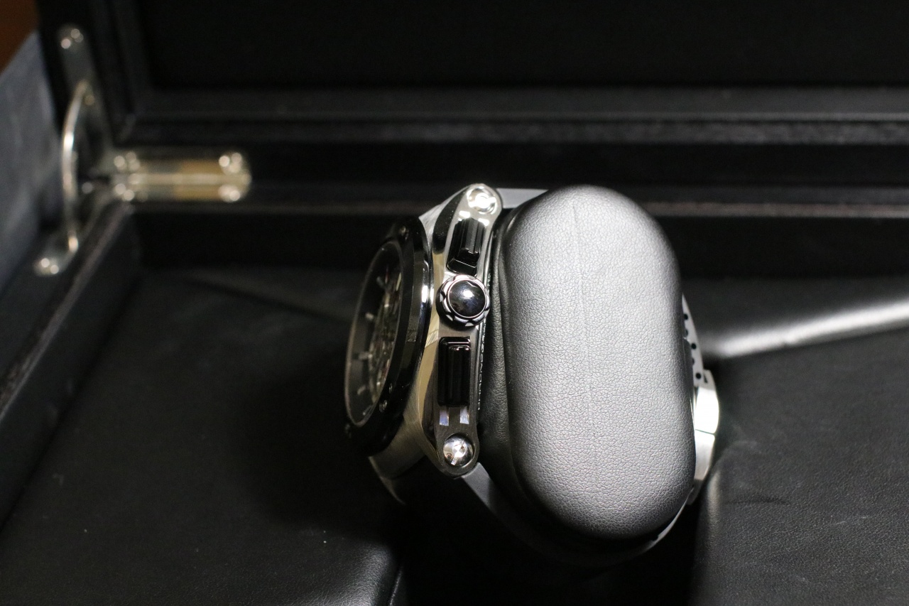 Действительно интересный огромный полу-скелетон с запасом хода и хронографом