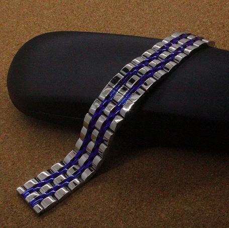 Поскольку предпочитаю циферблаты в тёмно-синей цветовой гамме, а корпус часов серебристый, то хотелось бы купить соответствующий металлический браслет (сейчас временно взял просто стальной серебристый).
