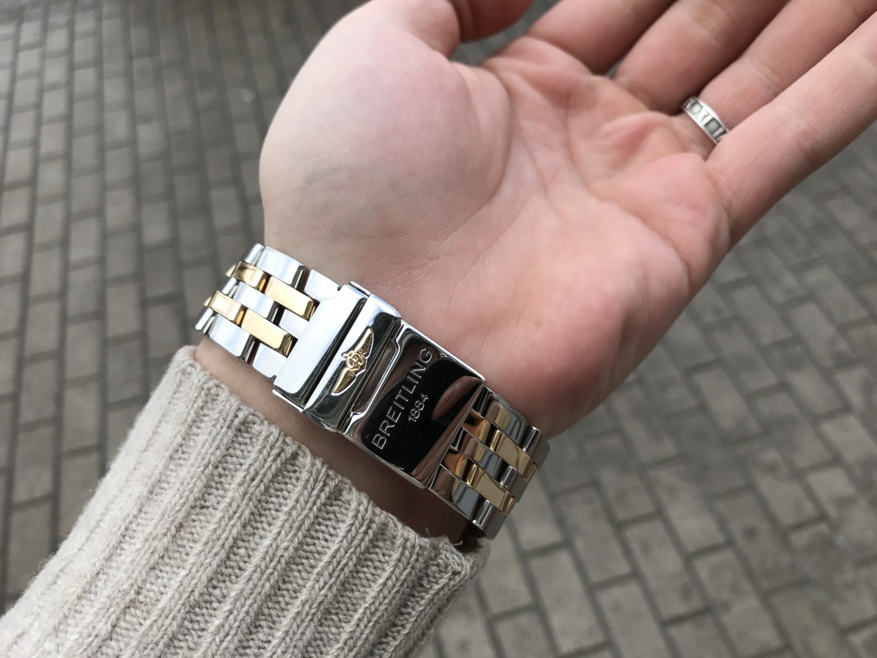 На биколорном браслете , знак на застежке выпуклый и золотой!