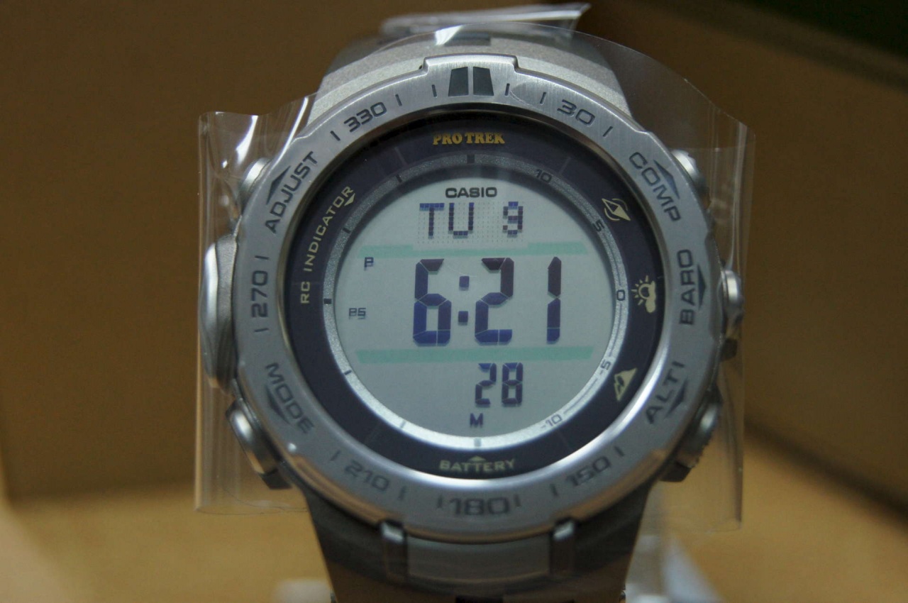 Встроенный цифровой компас. Диапазон измерения от 0° до 359° с точностью 1°. Высотомер - встроенный датчик барометрического давления с возможностью вывода результатов в единицах высоты над уровнем моря (от -700 до 10000 метров). Секундомер с точностью показаний 1/10с и временем измерения 1000ч. Сплит-хронограф. Таймер обратного отсчета от 1мин до 24ч. Функция отключения/включения звука. Стальной безель. Раскладывающаяся застежка, расстегиваемая одним касанием.