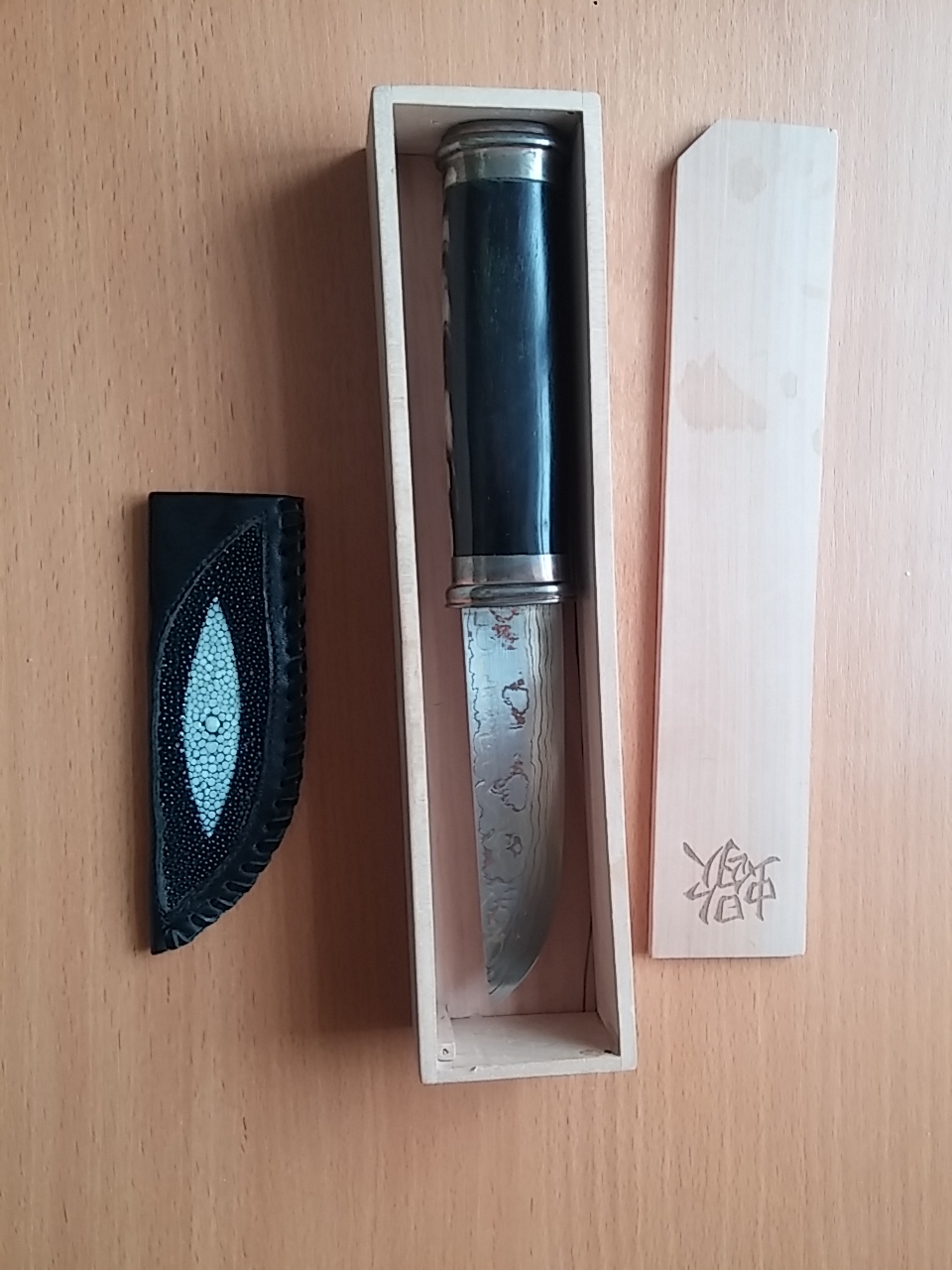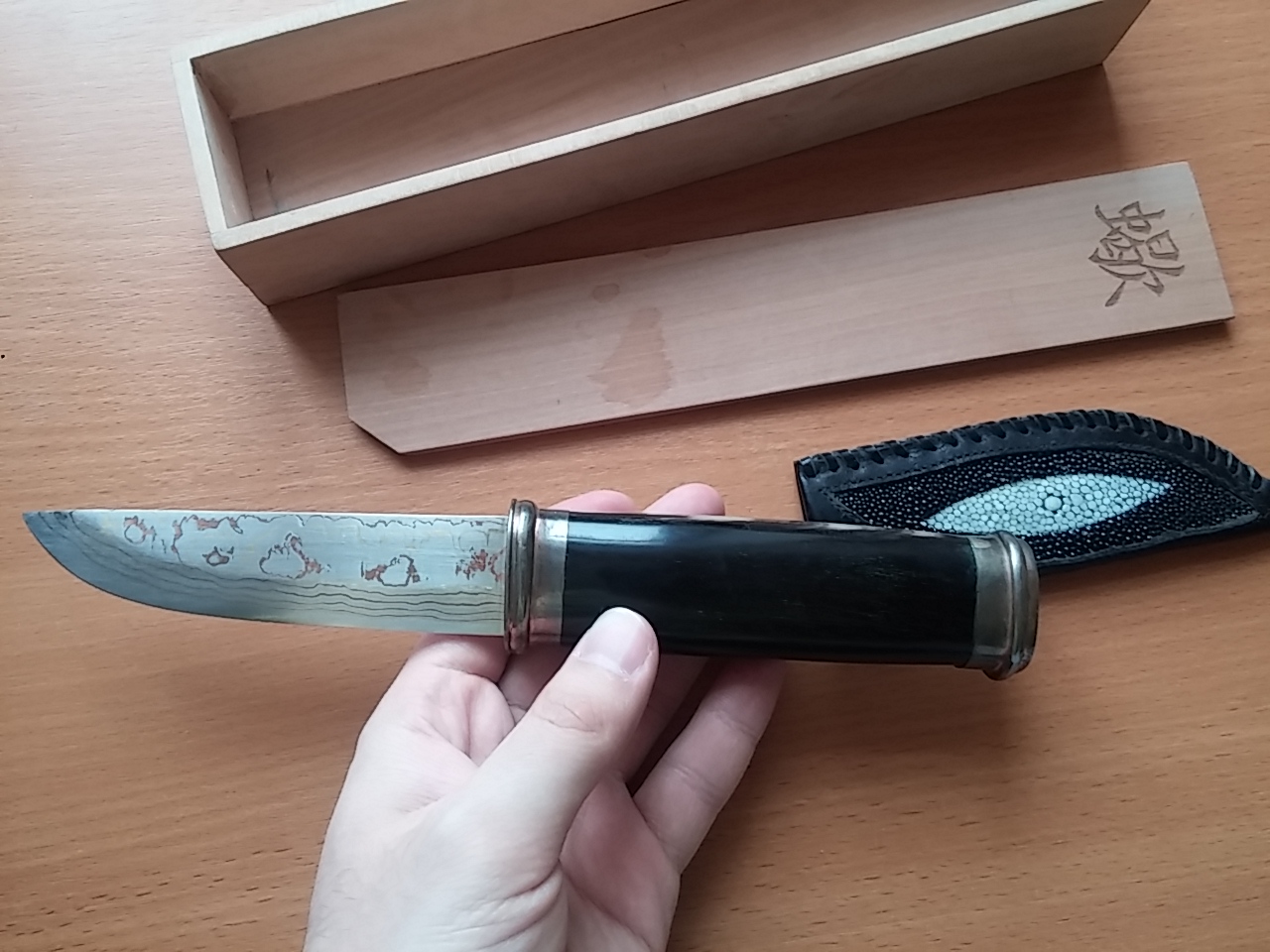 Нож "Скорпион" авторский, клинок цветной дамаск Такеши Саджи (Takeshi Saji) Япония