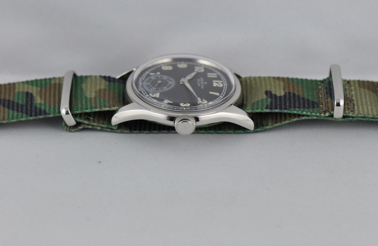 Часы покупал в феврале для себя, но к размеру (34 мм без учета головки) привыкнуть не могу. Поставил новый черный кожаный ремешок Hirsch и зенитовскую пряжку.