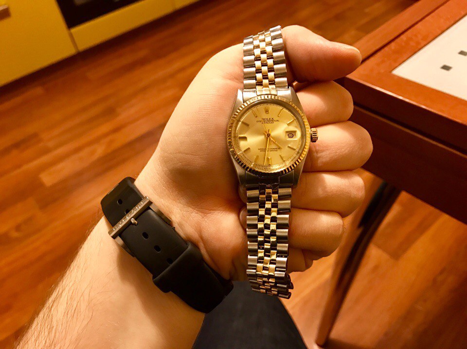 Продаю легенду! Ролекс. Тут и слов не нужно. Неувядающая классика, эталон стиля и олицетворение шика и роскоши. Если большинство часов теряют актуальность с годами, Rolex - никогда! Без преувеличения, ВЕЧНЫЕ часы. Корпус и браслет выполнены в сочетании стали и золота 750 пробы. Браслет полный, на любую руку. Состояние часов отличное, механизм обслужен. Механика с автоподзаводом, сверхточный сертифицированный хронометр, калибр 1570, запас хода 48 часов, водозащита 100м. Размеры корпуса 36 x 11 мм. Комплект: часы и коробка.