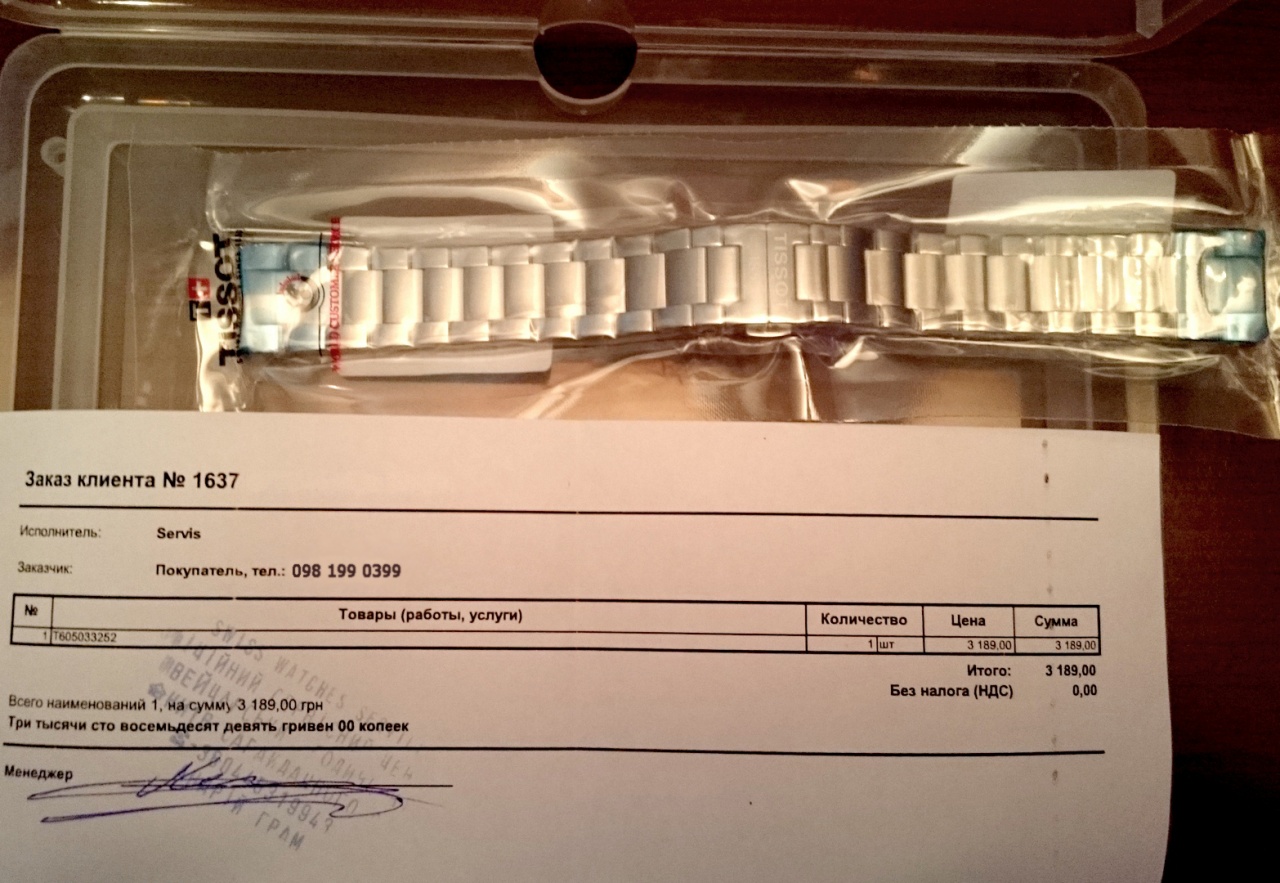 Часы приобретались у официального дистрибьютора TISSOT в Украине, магазине Vector-D (20.11.2015г):