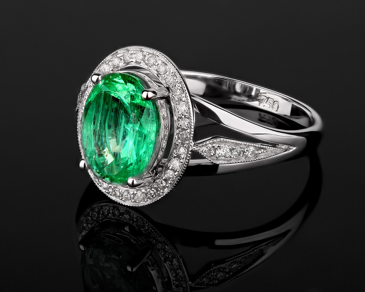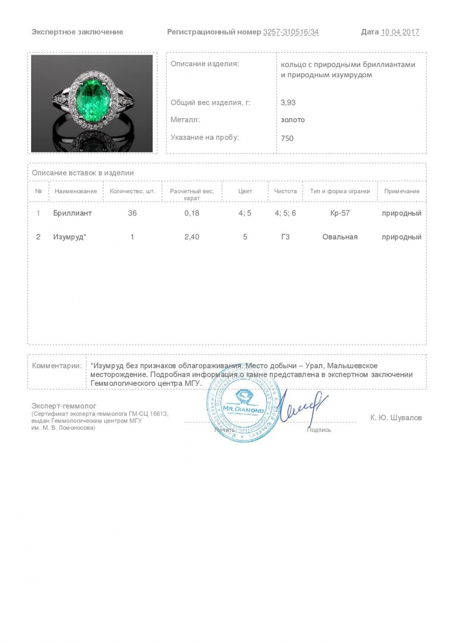 Бриллиантовое золотое кольцо с изумрудом 2.40ct