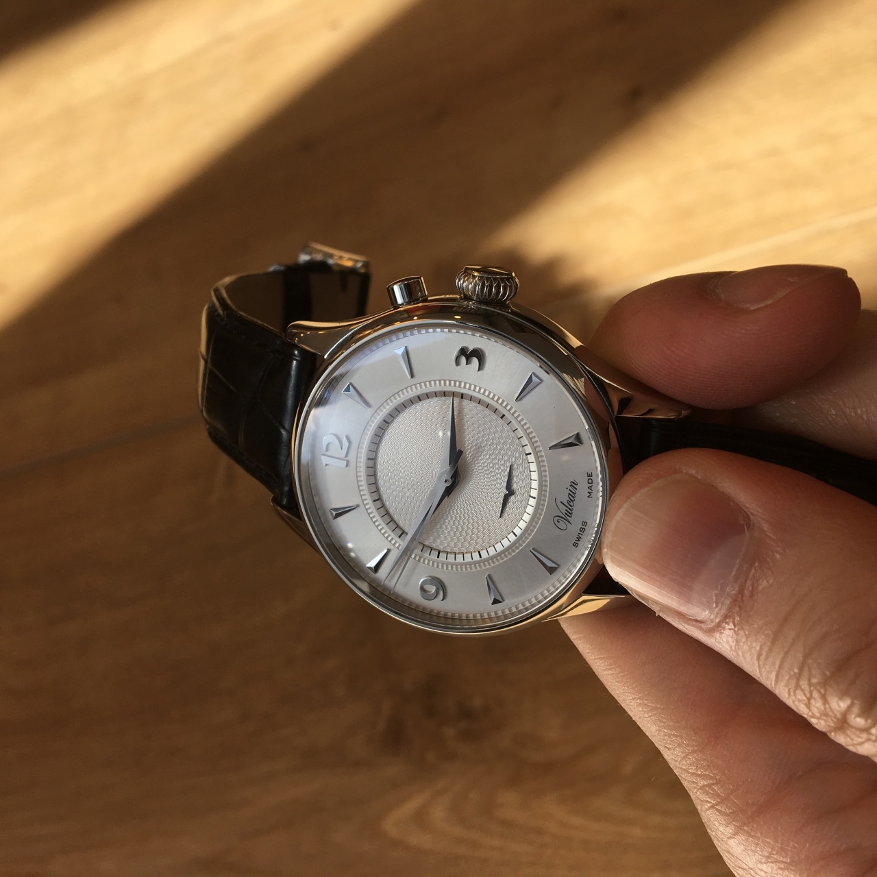 Элегантный минимализм, очень красивый циферблат с гильоше, который невероятно красиво переливается на солнце (см. мое видео). Редкое усложнение - будильник (стрелка будильника скрыта). Все это образец часового искусства от легендарной и до сих пор независимой мануфактуры.