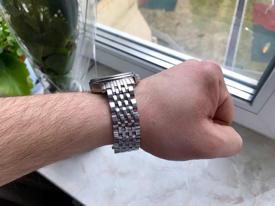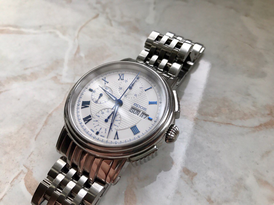 Очень красивый, изящный и надежный (Valjoux 7750) хронограф от истинно швейцарского бренда, в очень удобном диаметре 41мм. На Форуме есть прекрасная статья от форумчанина касательно его впечатлений об этих часах, и я решил, что лучше и объективнее отразить их будет трудно