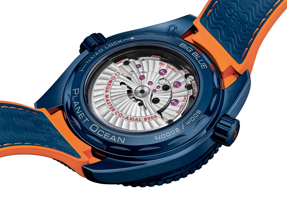 Новинка имеет круглый моноблочный корпус, изготовленный из синей керамики, диаметром 45,5 мм, водонепроницаемый до 600 метров. На торце завинчивающейся рифленой заводной головки, расположенной на 3 часах, выгравирован логотип бренда Omega. Вращающийся однонаправленный керамический дайверский безель. На 10 часах размещен гелиевый клапан. Сапфировое стекло установлено на передней стороне часового корпуса (выпуклое, с антибликовым покрытием) и на его завинчивающейся задней крышке. Циферблат синего цвета, с накладными арабскими цифрами и часовыми индексами, покрытыми, как и стрелки, люминесцентным составом SuperLumiNova белого цвета. Модель оснащена мануфактурным швейцарским автоматическим коаксиальным механизмом Omega 8906, с балансовой частотой 25200 полуколебаний в час (3,5 гц), двумя заводными барабанами, 60-часовым запасом хода, кремниевой спиралью, функциями индикации часов, минут, секунд (посредством соответствующих центральных стрелок), даты (посредством соответствующего цифрового указателя в прямоугольной апертуре, расположенной на 3 часах) и времени второго часового пояса (посредством соответствующей центральной стрелки оранжевого цвета на круглой оранжевой 24-часовой шкале, расположенной на периферии циферблата). Калибр официально сертифицирован Swiss Federal Institute of Metrology (METAS) в качестве Master Chronometer. Устойчив к воздействию магнитных полей, достигающих 15000 Гс. Калибр отлично отделан и декорирован.
