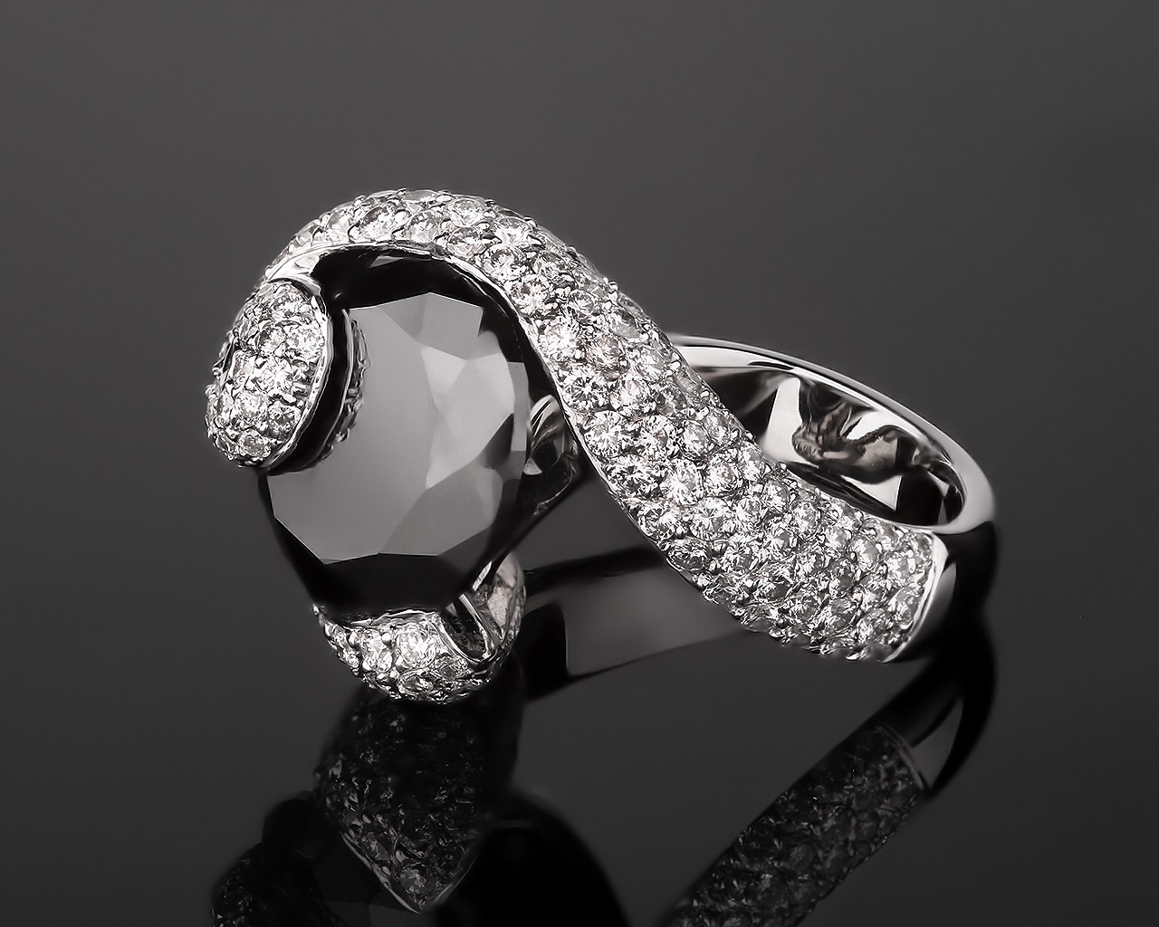 Роскошное золотое кольцо с черным бриллиантом 10ct