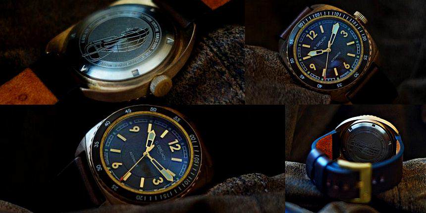 SUBMARINE идет с 43-мм корпусом из латуни с латунной головкой и стальным корпусом из нержавеющей стали 316L. Двойное купольное сапфировое стекло с внутренним покрытием AR.