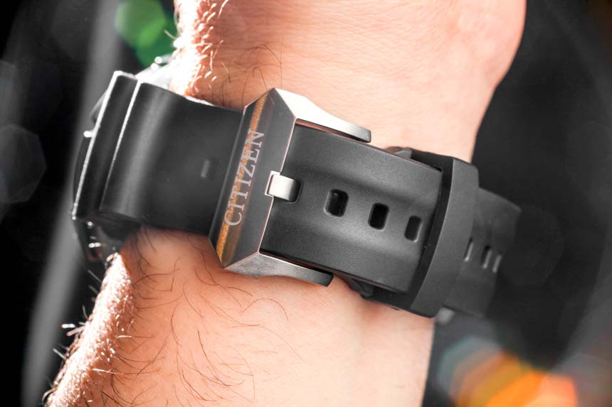 Преимущество Super Titanium у Citizen в том, что при всей массивности, корпус обладает очень малым весом, а прочность титана дополняет фирменная обработка, прибавляющая поверхности жесткости и устойчивости к царапинам. Опять же, никому не понравится, если его новые модные часы уже через месяц покроются царапинами, особенно когда они предназначены для такой агрессивной среды.
