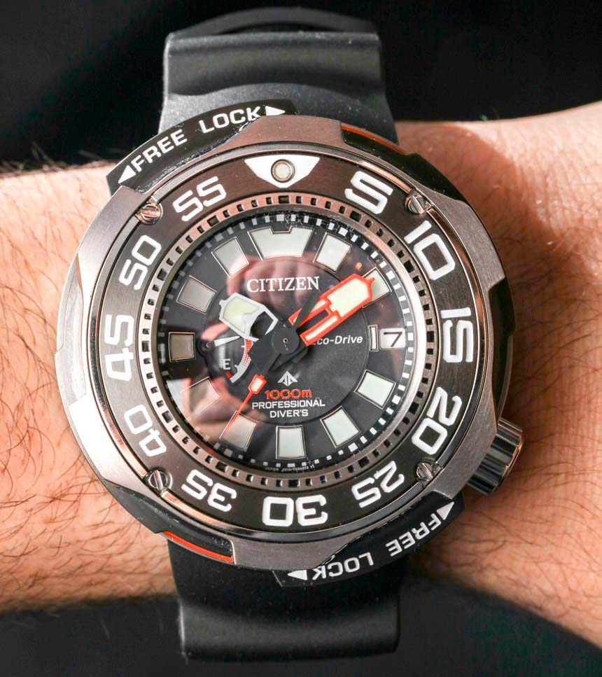 В Citizen Eco-Drive Promaster Professional Diver 1000m есть автоматический клапан для выпуска гелия. Профессиональные водолазы, которым нужны такие вещи, как точный отсчет времени в декомпрессионной камере, конечно же, оценят эти функции, но большинство потенциальных покупателей данной новинки, вероятно, никогда не узнают, на какие подвиги способны их Citizen Eco-Drive Promaster Professional Diver 1000m.