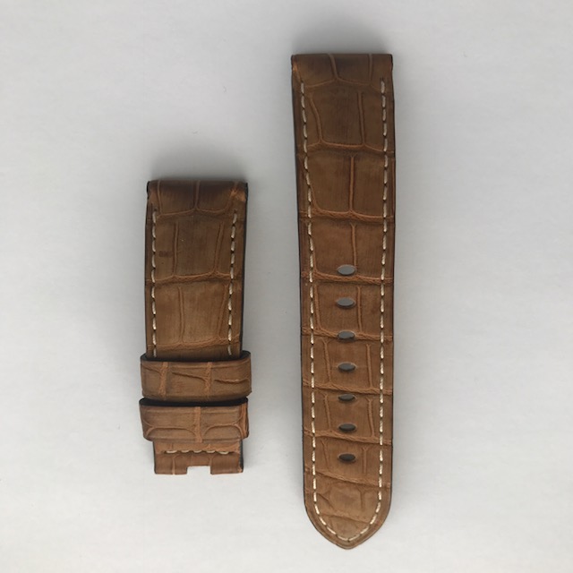 Ремень Panerai PAM OEM под клипсу КРОКОДИЛОВЫЙ НУБУК, ЗОЛОТО, ЭКРЮ, 24/22