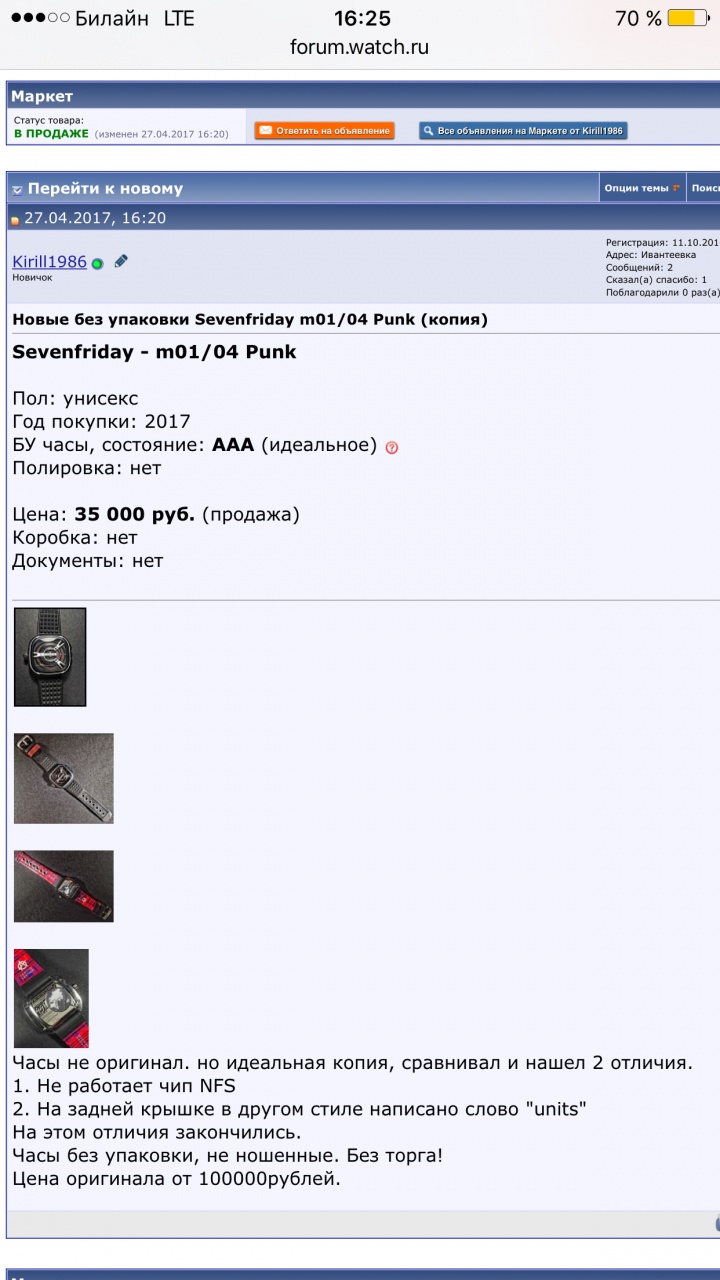 Неоригинальные Sevenfriday на Маркете? - Часовой форум Watch.ru