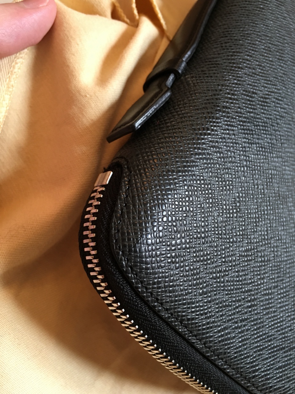 - Кожа Taiga с неброскими тиснеными инициалами LV, подкладка из телячьей кожи