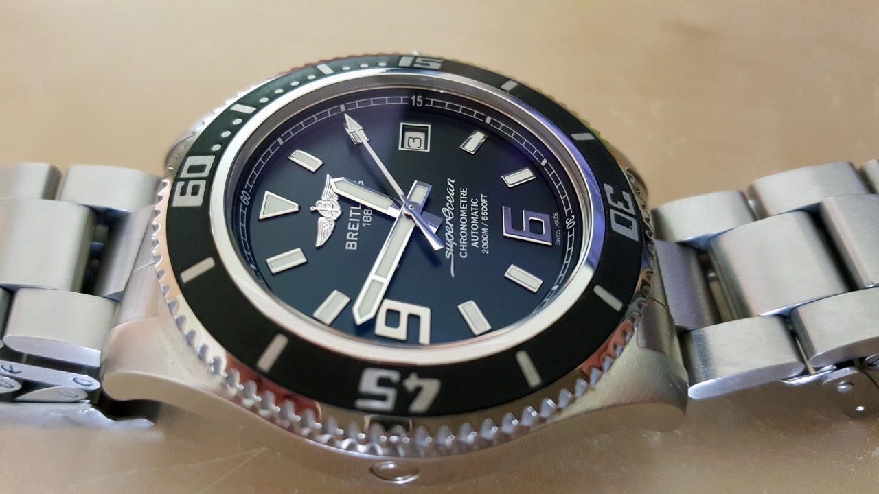 История Breitling Superocean начинается в 1957 году, когда был представлен первый образец этой модели. Модель имела водозащиту 200 метров. Размер корпуса 36 мм. Модель была в виде трехстрелочного автоматического дайвера – реф 1004, а также хронографа, реф 807, собранного на калибре Venus 150. Модели имели все уже привычные черты дайвера – люм, хорошо читаемые стрелки, вращающийся безель.