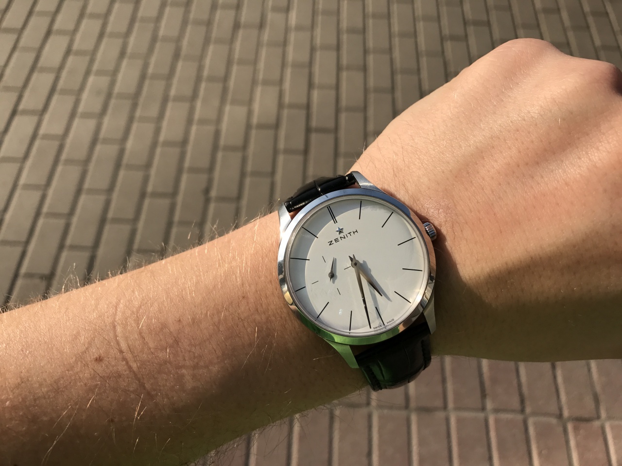 Отличный ручник от Zenith! Прекрасные костюмные часы! Которые еще и ультра-тонкие! Прекрасно лежат на руке! Ход отличный , все документы и даже бирка есть!