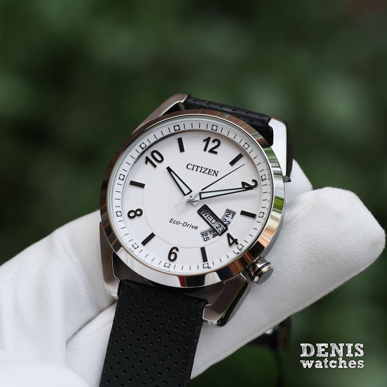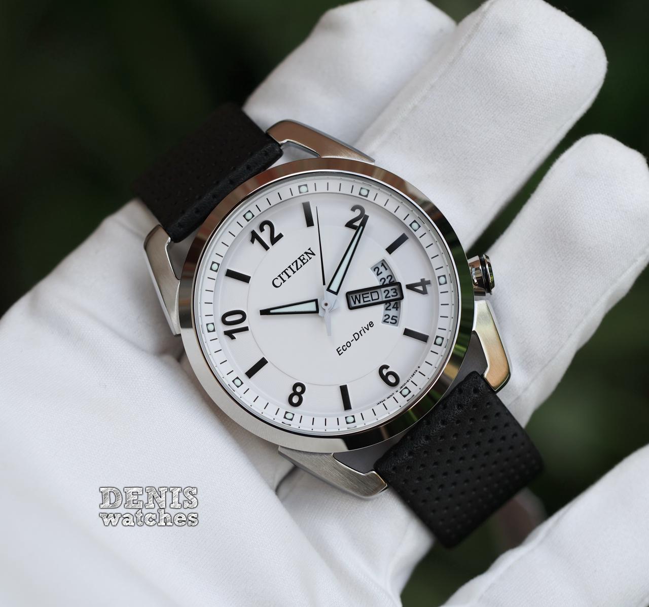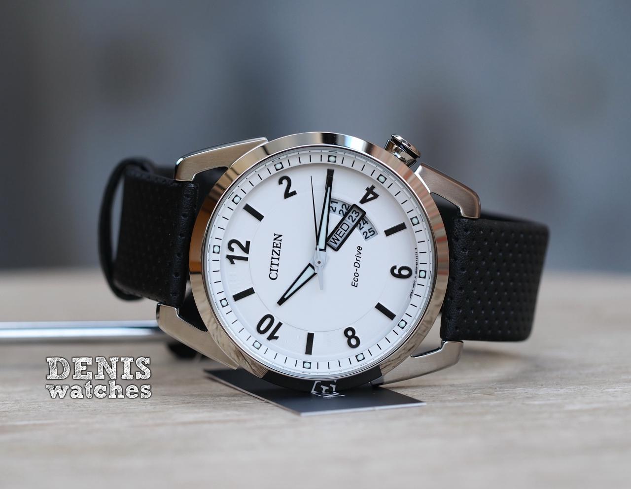 Стильный трехстрелочник с белоснежным циферблатом на черной коже!