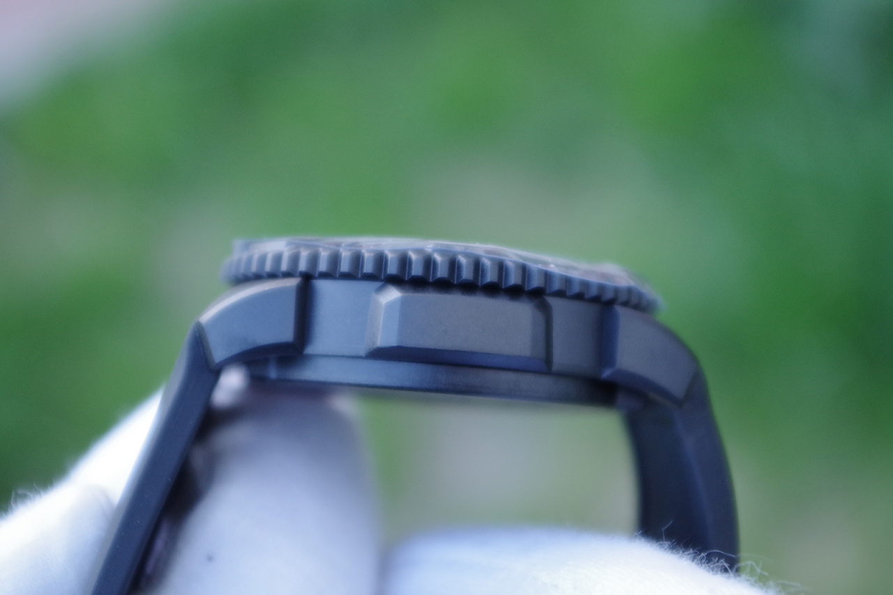 Evo Seal Blackout Series. 12-ти и 24-х часовой формат времени. Вращающийся безель. Задняя крышка из усиленного карбона закреплена стальными винтами. Заводная головка с защитой выполнена из стали.