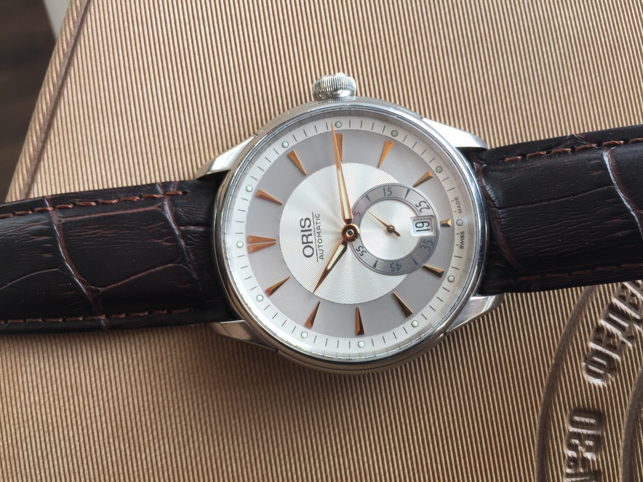 Продам костюмник Oris Artelier Small Second Date . Состояние отличное или хорошее для кого как, смотрите фото. Ремень J.A.Willson.