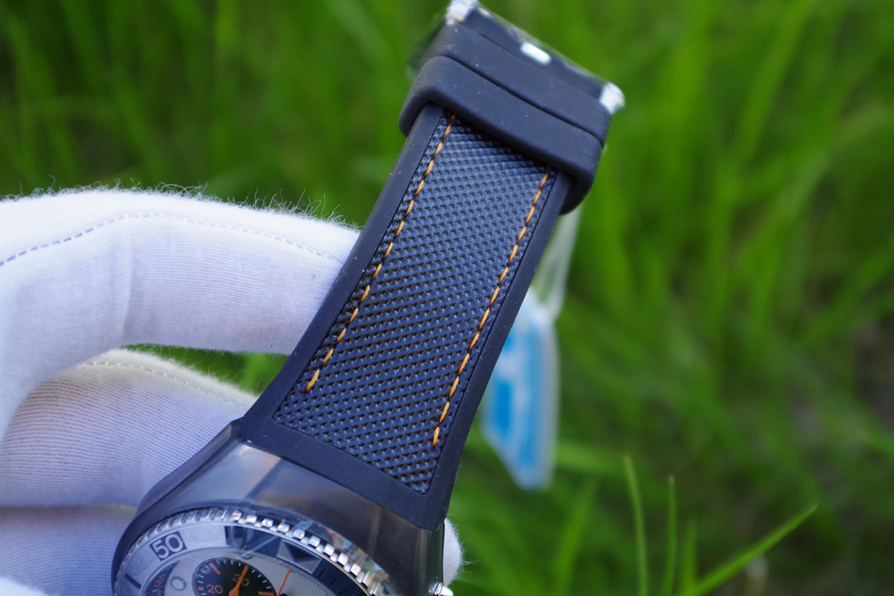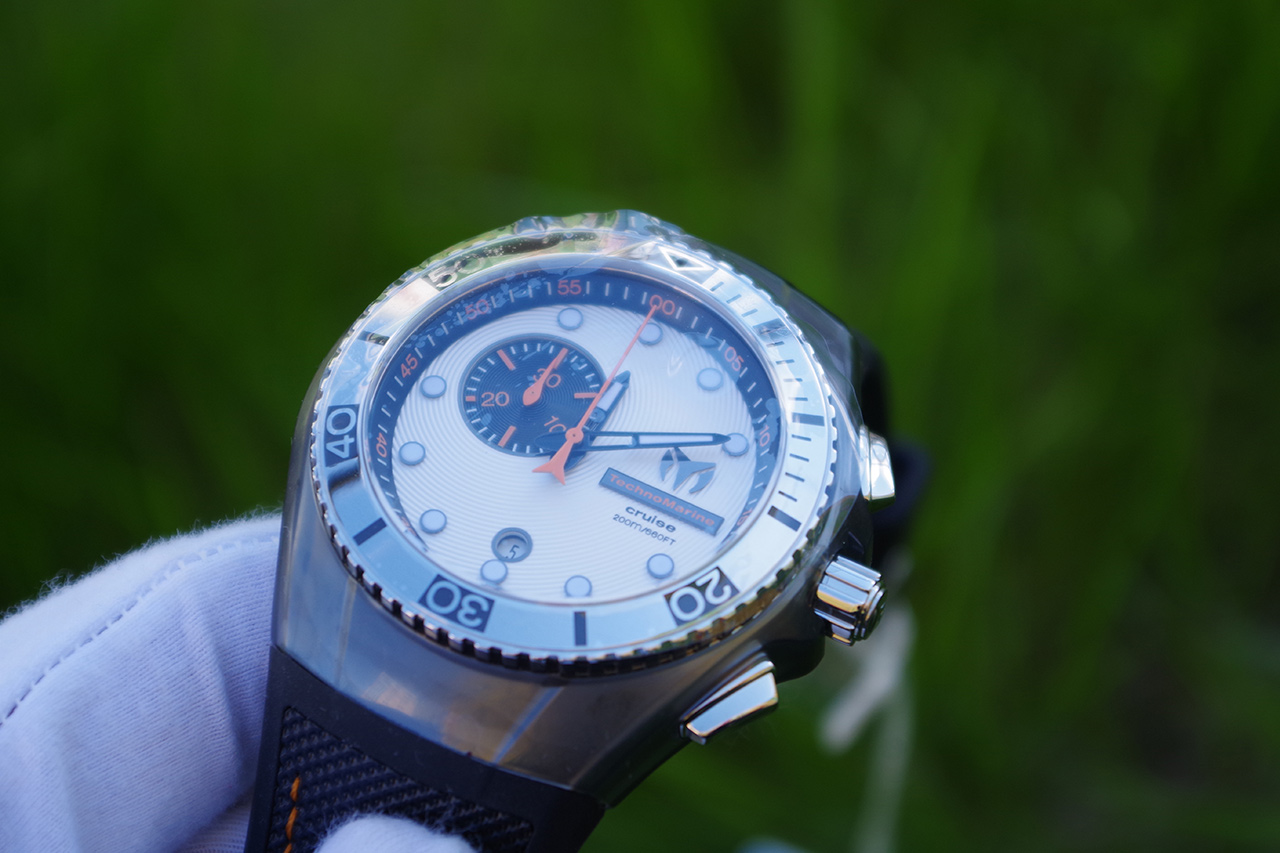 Cruise One. Часы-хронограф с секундомером. Стальной безель вращается в одном направлении. Заводная головка с защитой. В комплекте сменное покрытие корпуса и силиконовый ремешок.