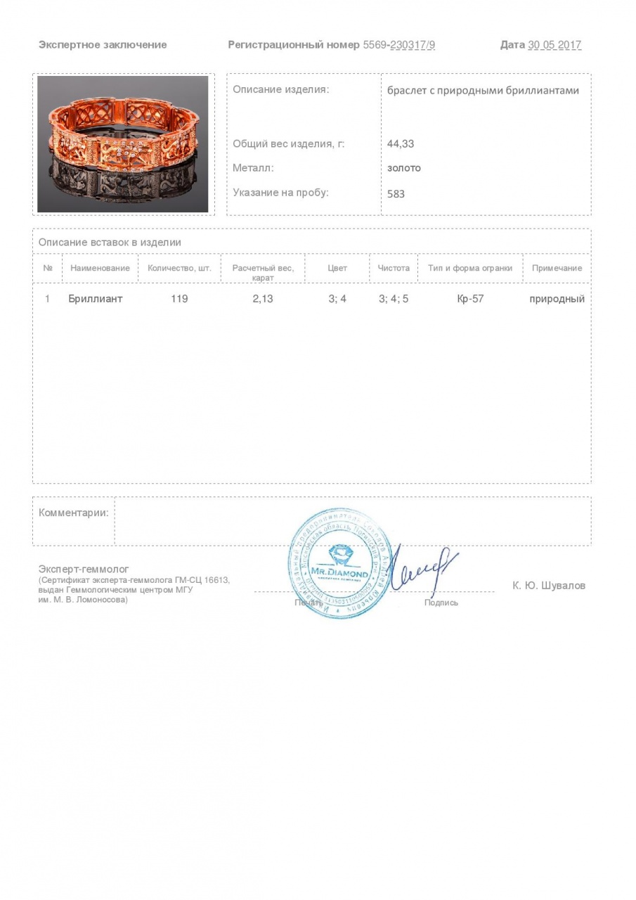 Внушительный золотой браслет с бриллиантами 2.13ct