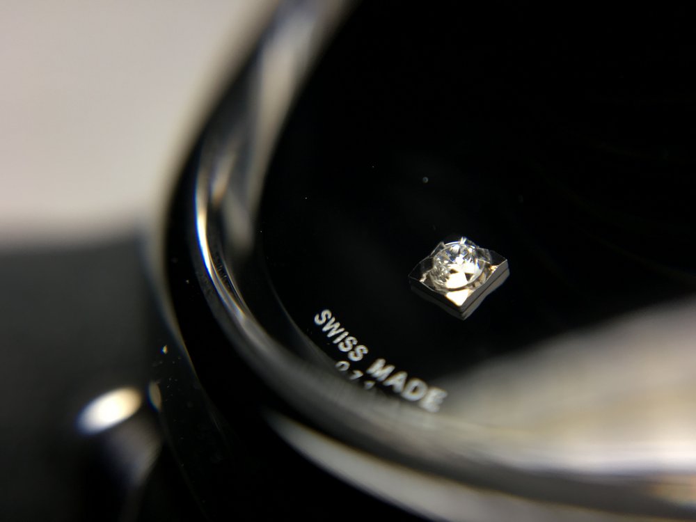 Монолитный керамический корпус, циферблат украшен 4 бриллиантами общим весом 0.028 ct