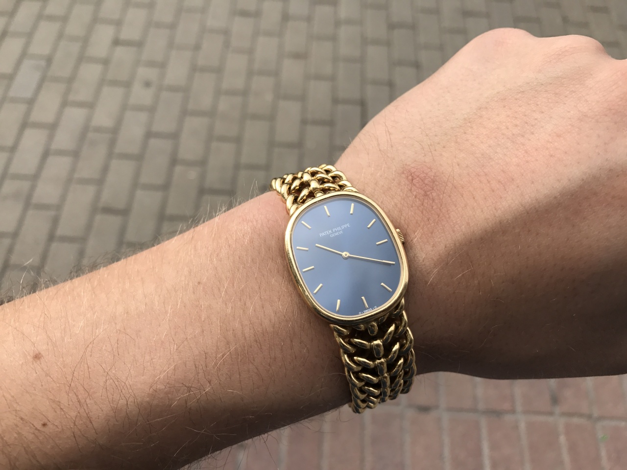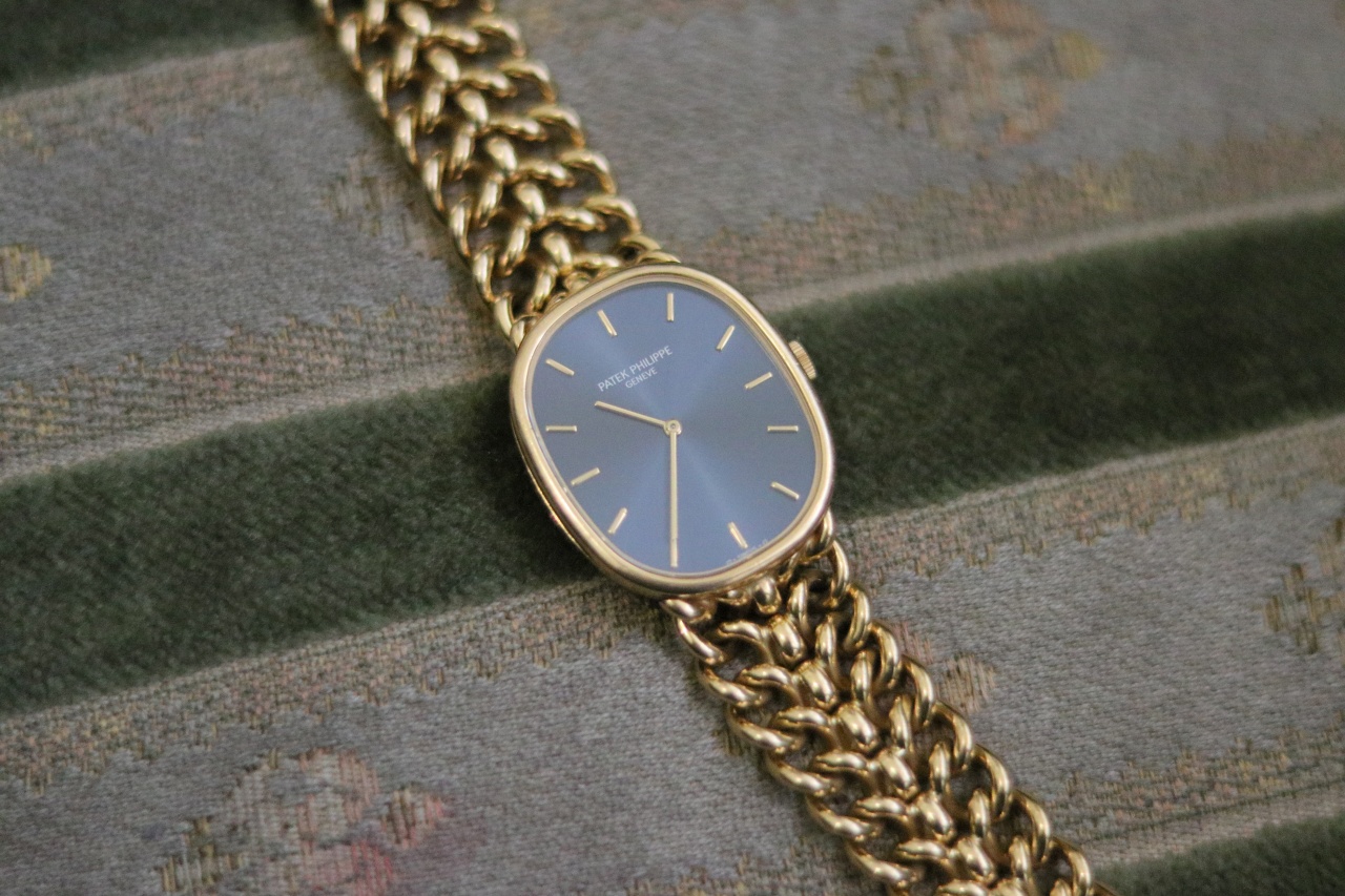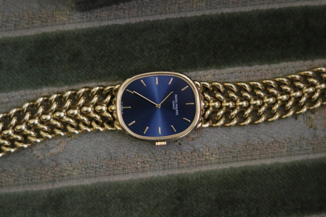 Patek Philippe Golden Elipse ( Золотой браслет , Синий циферблат, механика )