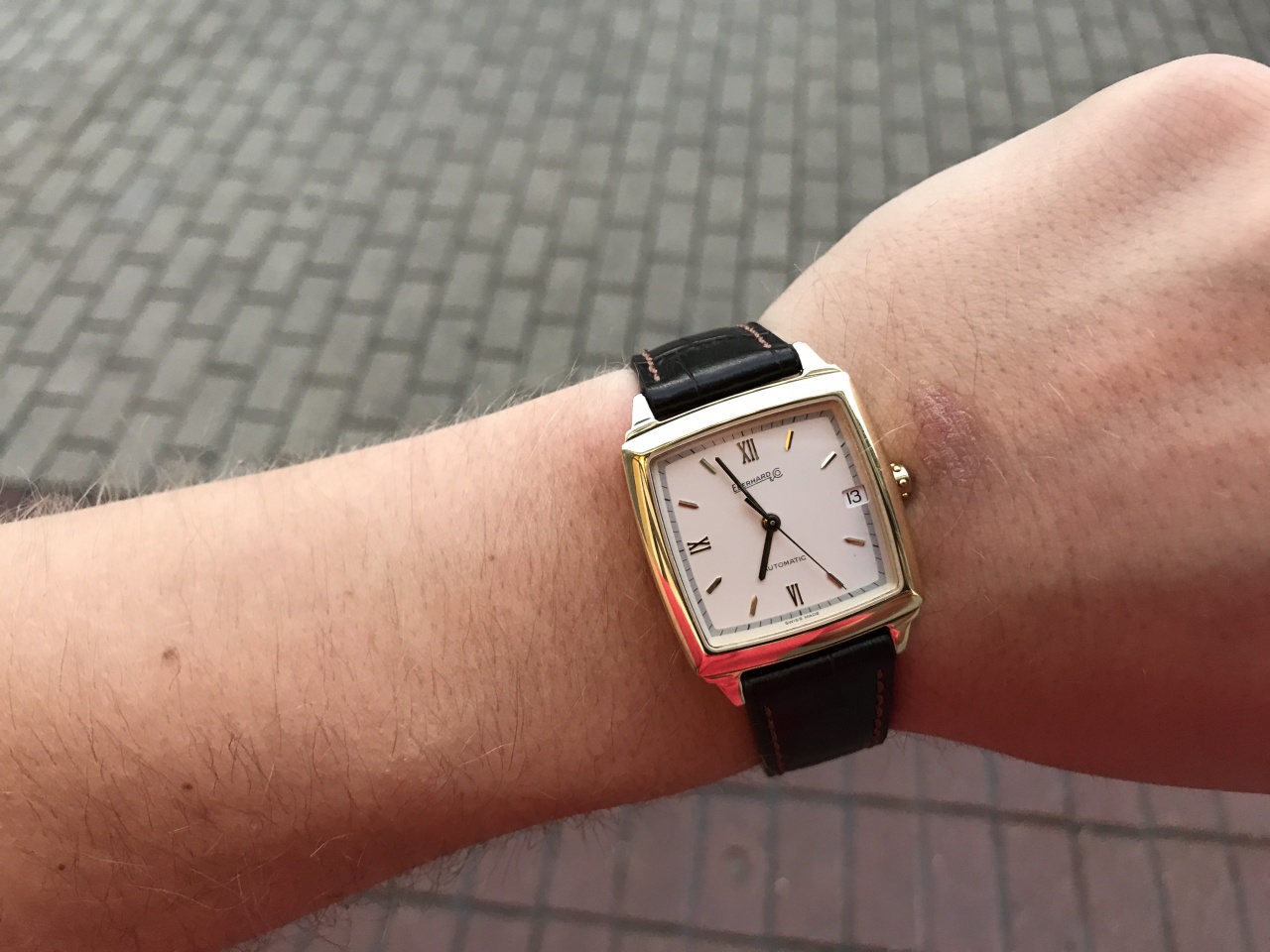 Отличные костюмные золотые часы ( 750 проба ) , после репассажа и полировки! Новый ремень! По желанию в подарок коробка No name!