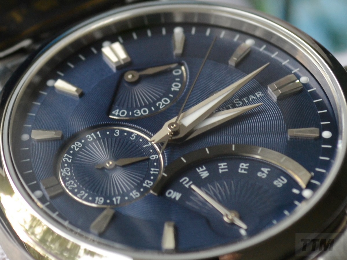 механические часы известной компании Orient, прекрасный синий циферблат, ретроградные