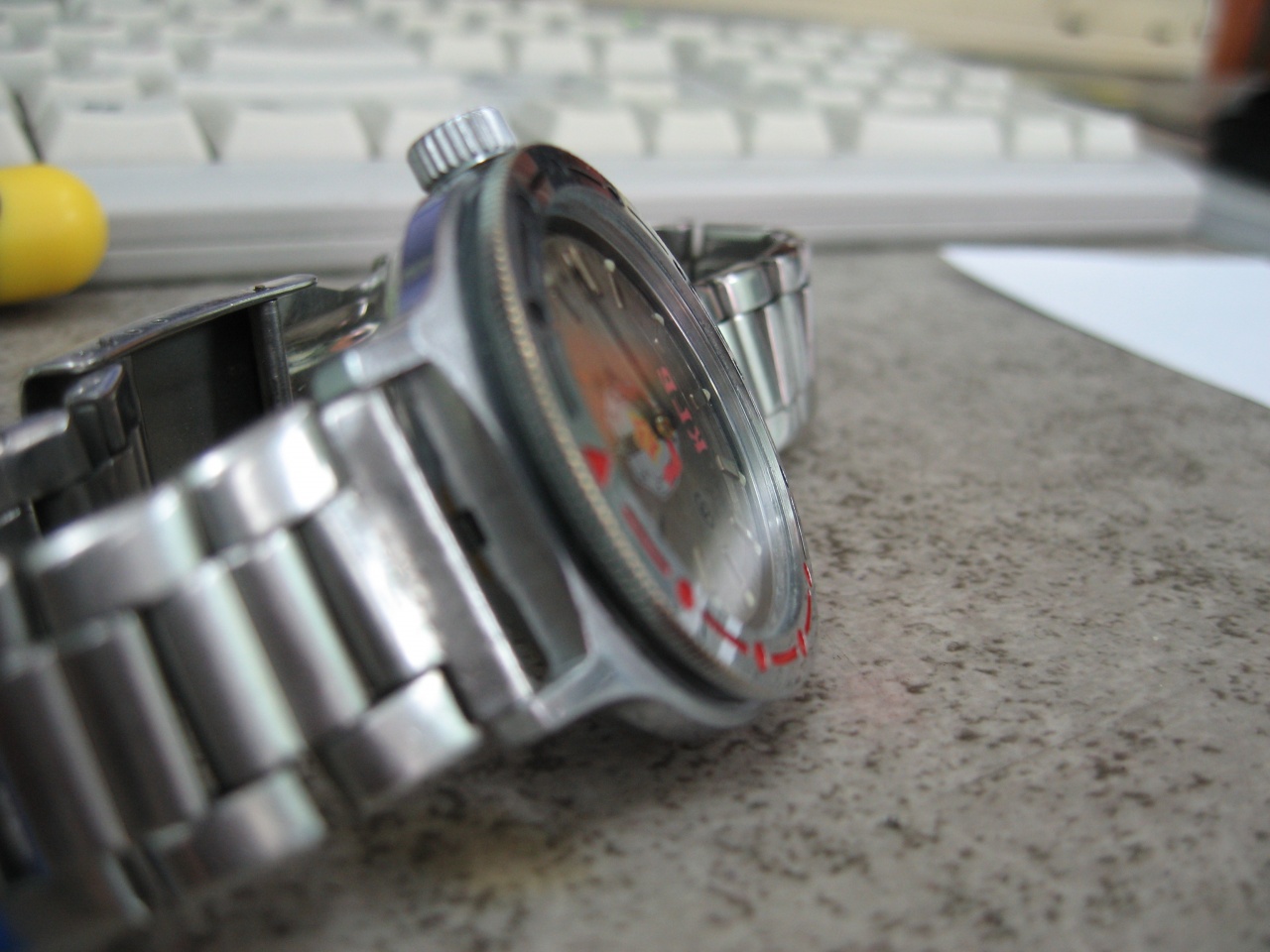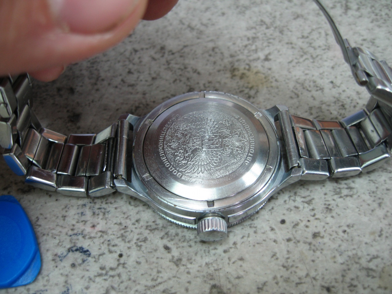 Но вот теперь у меня проблема: когда стекло было тонкое, а водозащиты не было неродной цифер радовал глаз белым ободком с минутной разметкой и надписью "Сделано в СССР". Теперь же этот ободок прячется за металлическим кольцом: