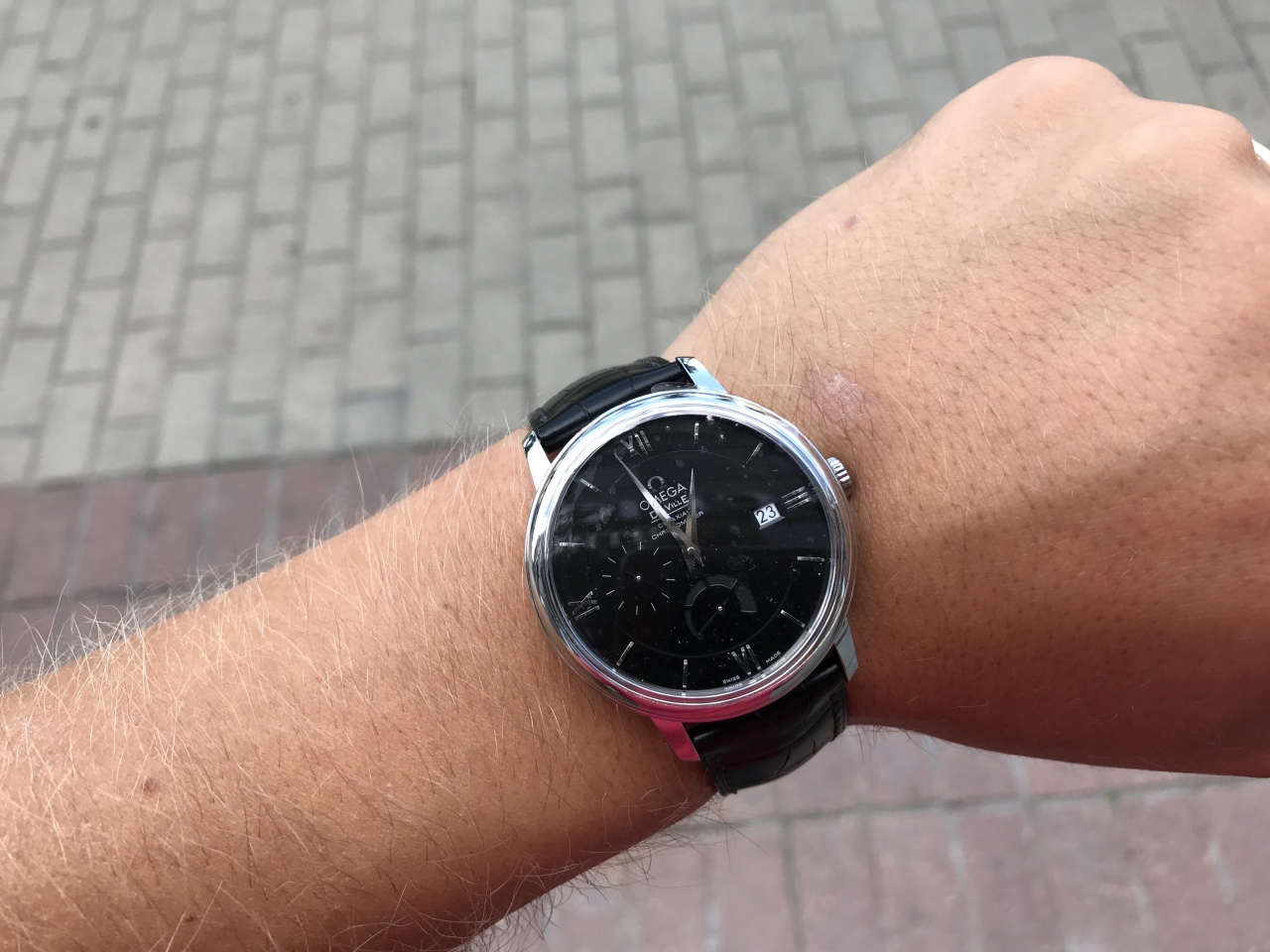 Omega De Ville Prestige Co-Axial 39.5 (Черный циферблат , черный крокодил , Запас хода )