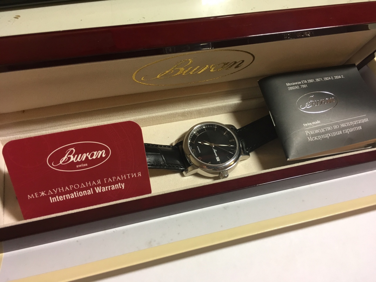 Швейцарские Часы БУРАН СА СЕВЕРНАЯ ПАЛЬМИРА Swiss BURAN SA NORTHERN PALMYRA B2412814490. Состояние отличное, поставил бы АА, но ремешок подводит,на ремне следы носки, как правило новый хозяин новый ставит. Swiss made. Механизм автоподзавод ЕТА 2824-2, витики на механизме синенькие, красиво. Диаметр 42мм. Стекло сапфир, антиблик. Люм стрелки и отметки. В носке мало, с осени 2016. Лимитированная серия 99 штук. На задней крышке гравировка таможенной службы, спец заказ. Без ремонта и вскрытия. В комплекте все пленочки, документы и коробка из красного дерева. Лимитка, сапфир, люм, eta 2824-2 отличный набор! Выставлял уже ранее на продажу, но передумал. Теперь снова в продаже!