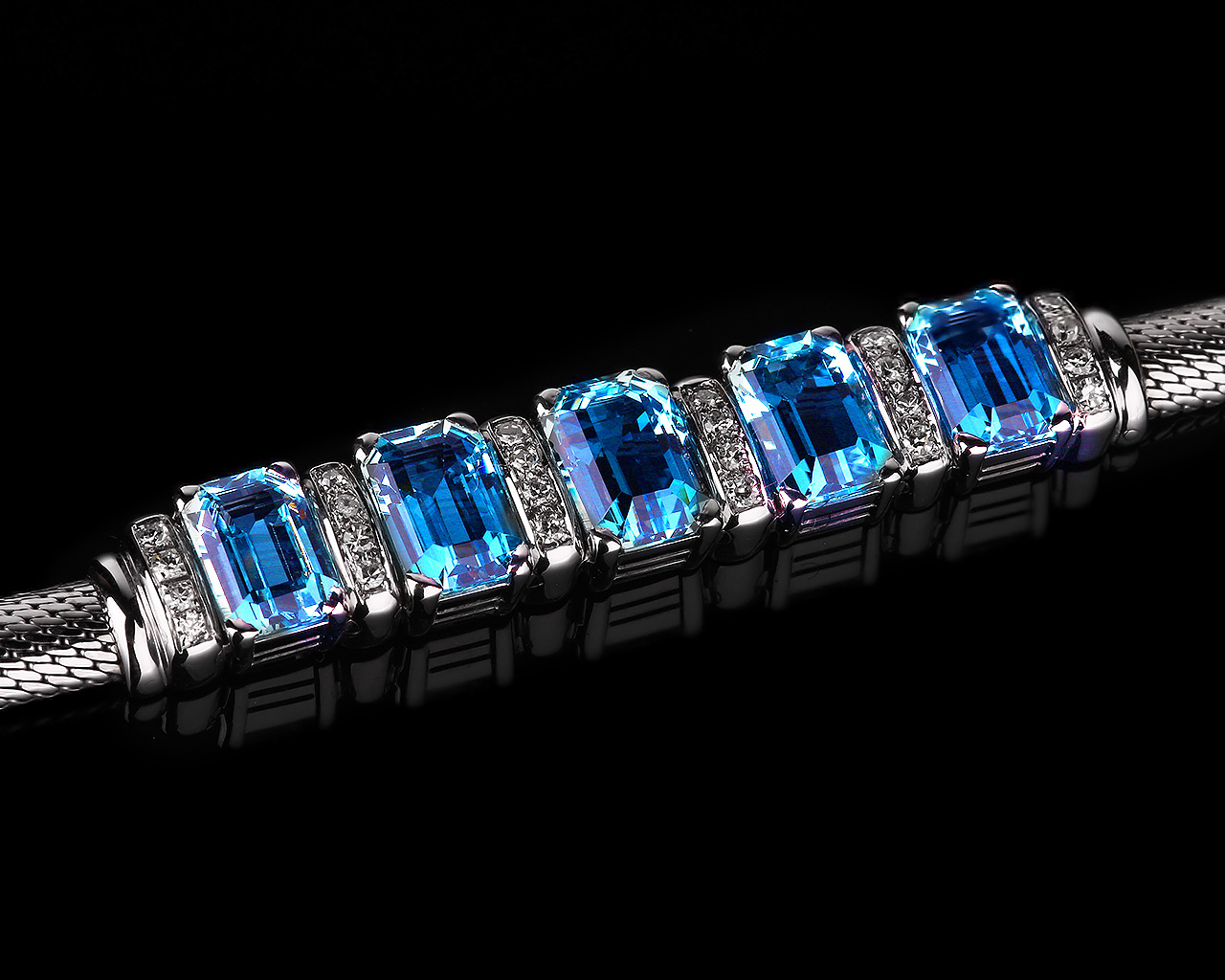 Бриллиантовый браслет с аквамаринами 20.21ct