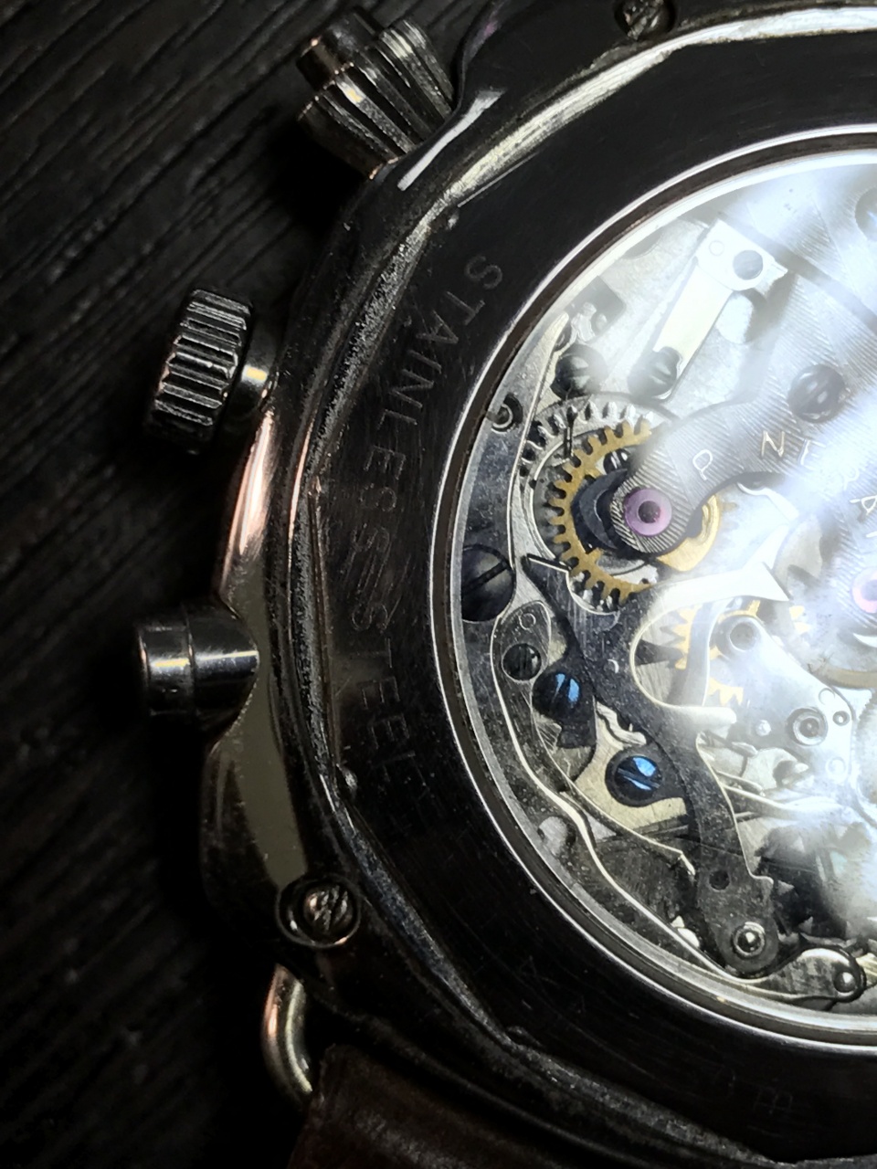 Уважаемый ваши часы P NERAI так написано у вас на механизме, увы к настоящим Panerai никакого отношения не имеют. У вас подделка причем низкого качества.