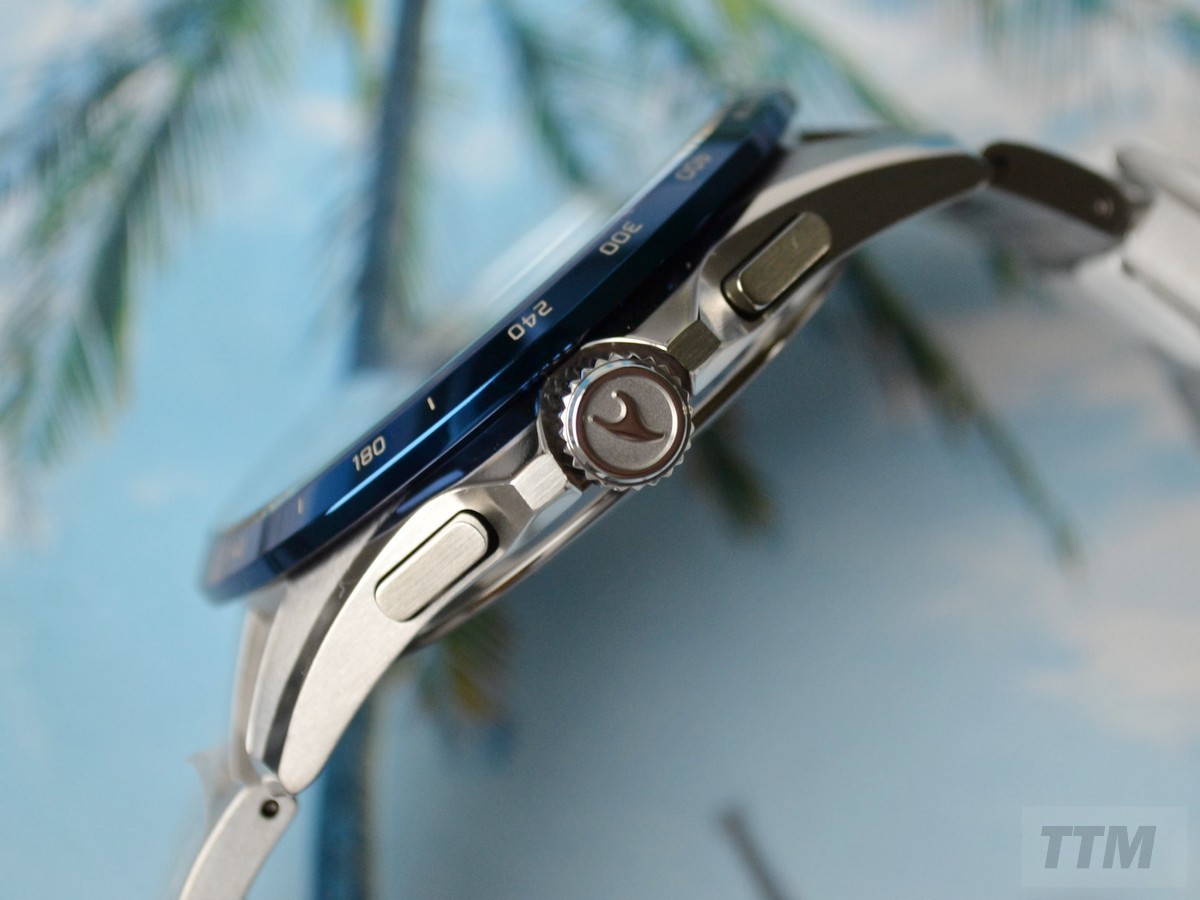 Внутрияпонский хронограф, сапфировое стекло высокой прозрачности, титановый корпус