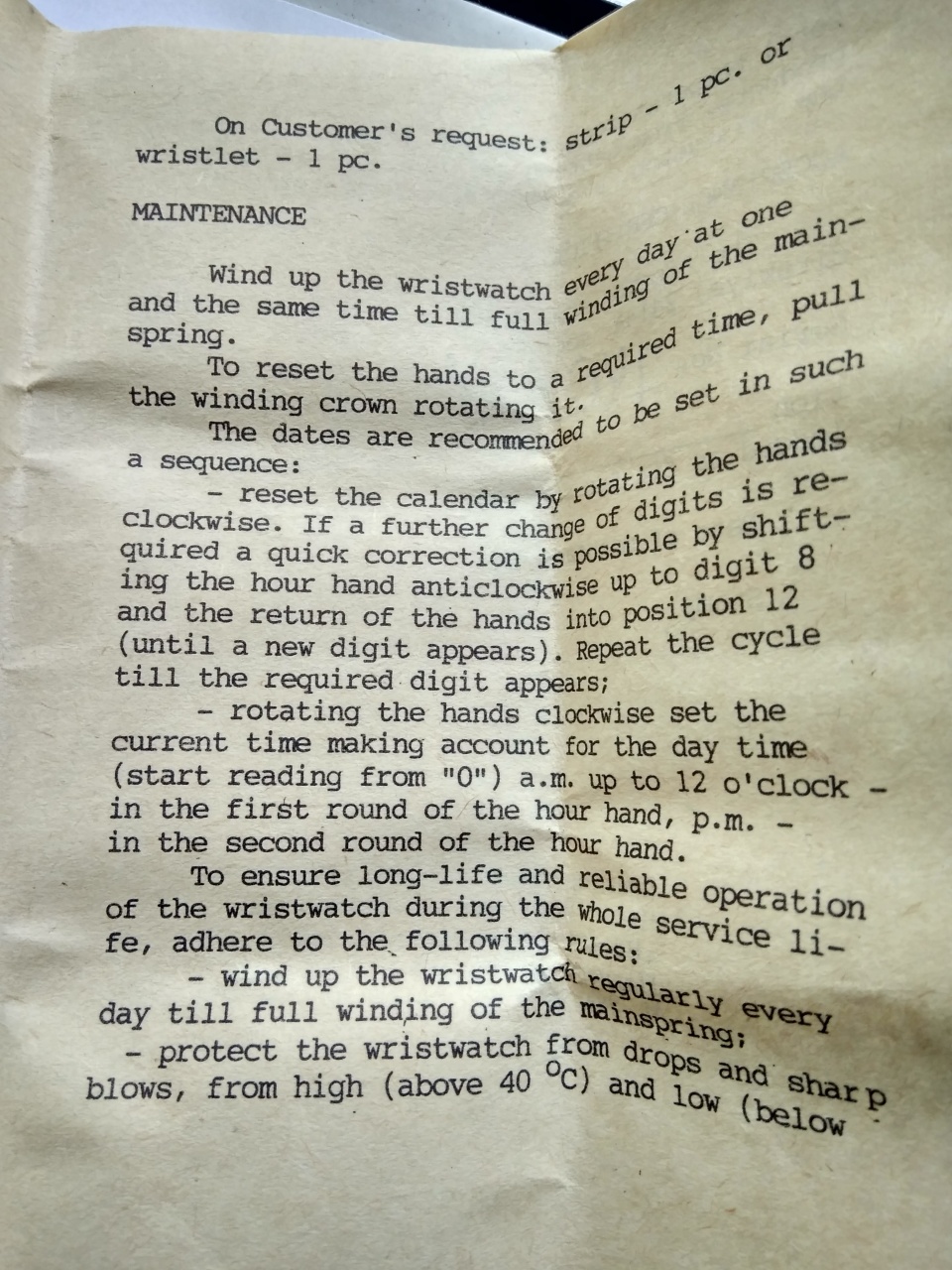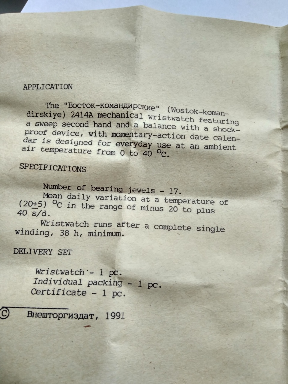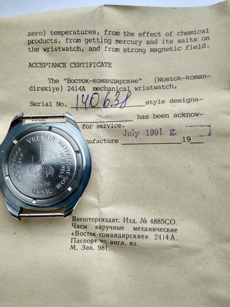 СССР ВОСТОК NOS Vremir с документами новые!!!