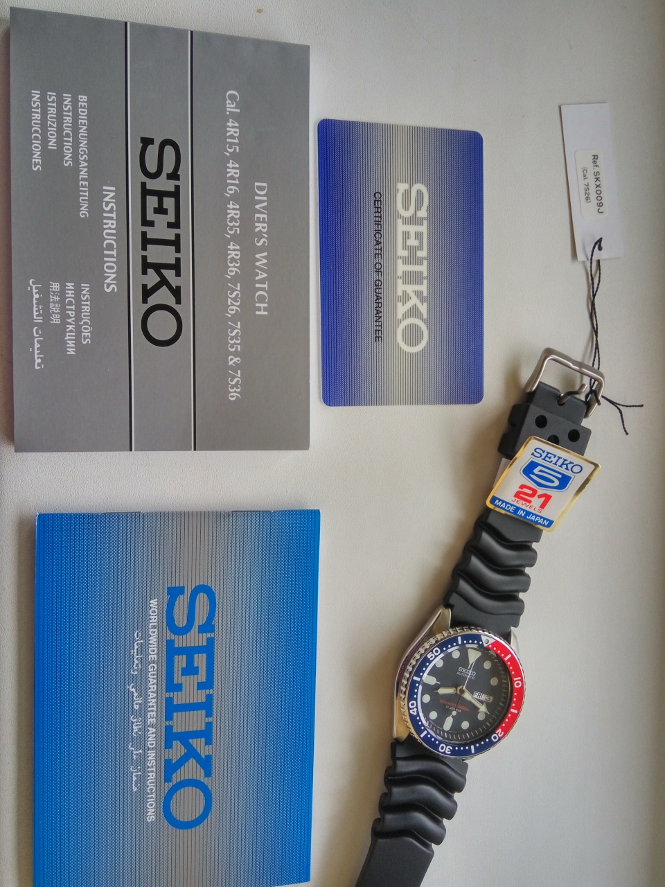 В продаже известный дайвер Seiko skx 009 c пепси-безелем. Seiko skx является сертифицированным дайвером по ISO. Долговечный механизм 7S26 славится своей надежностью. Часы совершенно новые, КОРОБКА ОТСУТСТВУЕТ, однако все остальное, включая все документы и международную гарантию, есть.