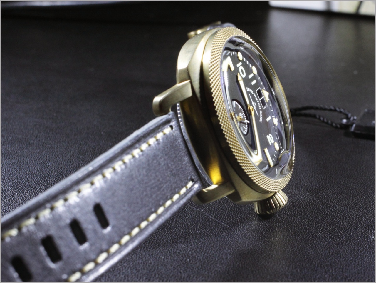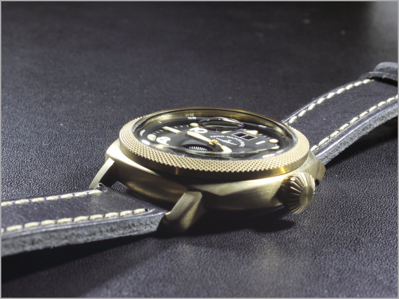 1. Часы не крупные, 40мм без ЗГ, но и не мелкие, в т.ч. из-за этой самой ЗГ, весьма крупной. Большинство популярных в последнее время бронзовых (как правило азиатских) часов представляют собой эдакие шайбы, которые не под каждый рукав поместятся и не на всякое запястье сядут.