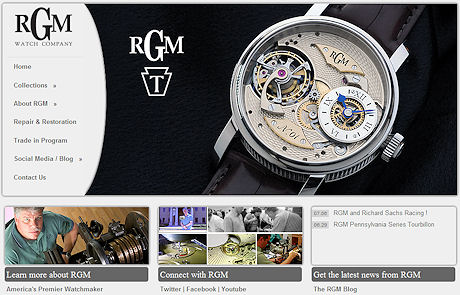 Часовая компания RGM обновила свой веб-сайт, увеличив объем информации и упростив ее поиск. Содержимое сайта также интегрировано в популярные социальные сети Facebook, Twitter и в YouTube, что позволяет поклонникам бренда получать информацию мгновенно. Навигация на сайте теперь обновлена, она стала более последовательной и интуитивно понятной.