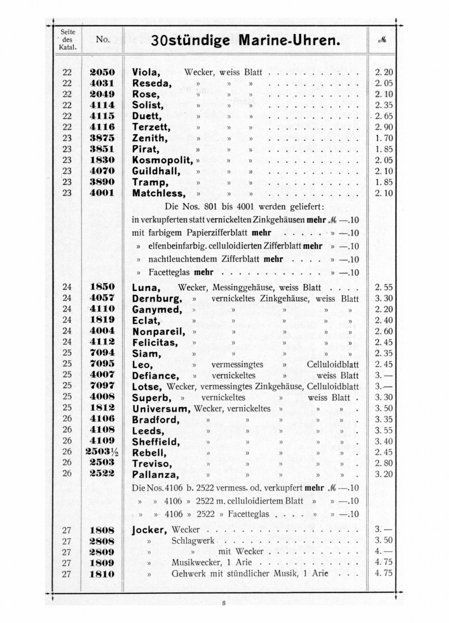 Прейскурант "Junghans & Thomas Haller" за 1908 год