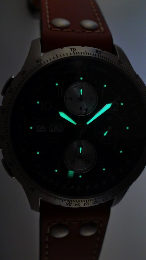 - Механизм - Швейцарский автоматический, калибр Valjoux H-21 - доработанный ETA7750